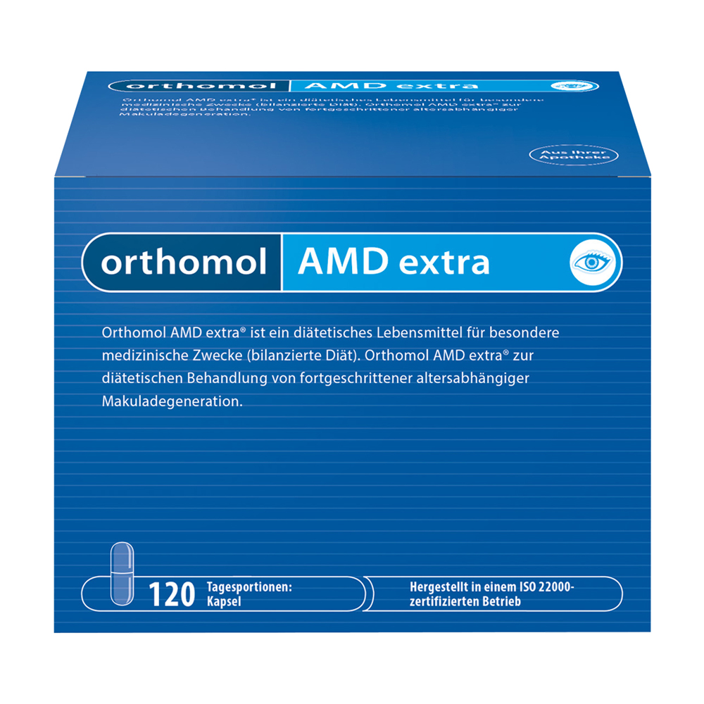 Orthomol AMD extra Kapseln wurden speziell für Patienten mit altersbedingter Makuladegeneration entwickelt. Die Kapseln liefern dem Körper eine spezielle Kombination unterschiedlicher Nährstoffe, die das Auge gezielt unterstützen.