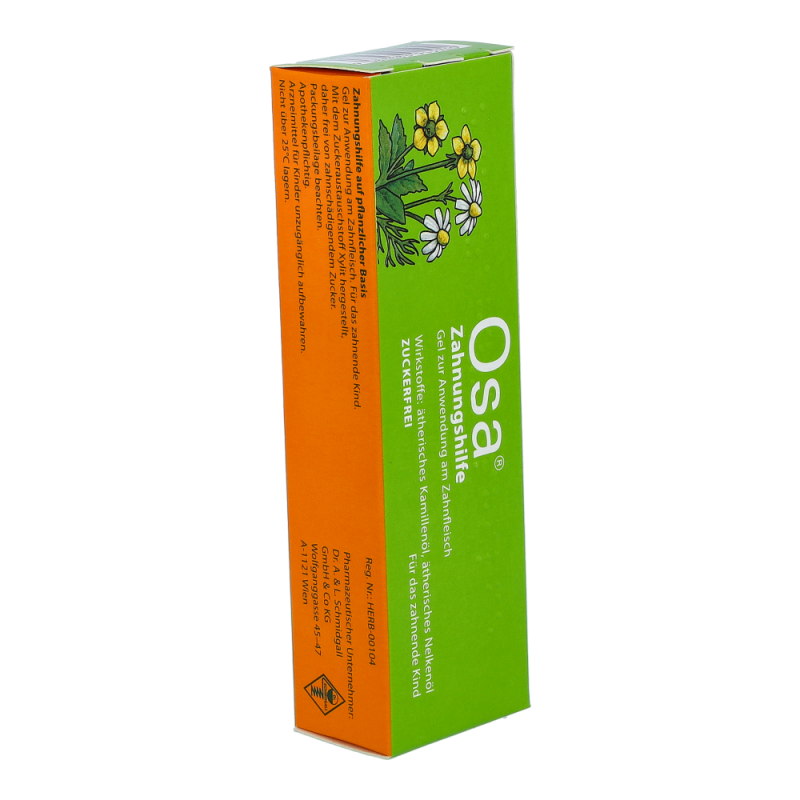 Osa Zahnungshilfe Gel ist ein traditionelles pflanzliches Arzneimittel zur Anwendung bei Zahnungsbeschwerden von Kleinkindern ab dem vollendeten 3. Monat bis zum 4. Jahr. Die Anwendung kann bei Bedarf bis zum Durchtritt aller Milchzähne sowie auch der Backenzähne fortgesetzt werden.