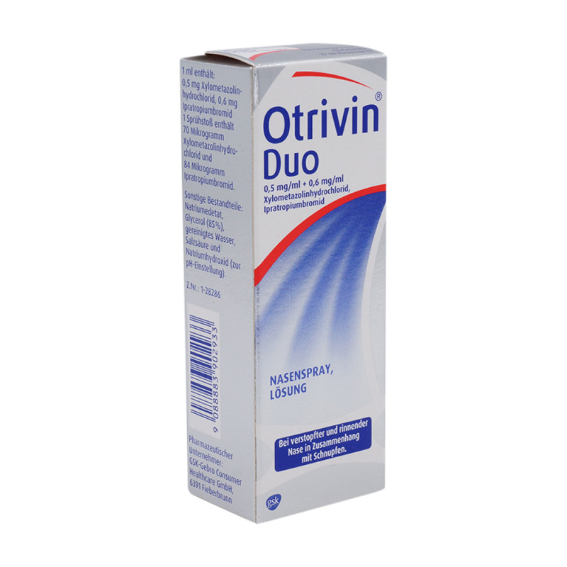 Otrivin Duo ist ein Kombinations-Arzneimittel bestehend aus zwei verschiedenen Wirkstoffen. Einer der Wirkstoffe hilft gegen rinnende Nase, der andere hat eine abschwellende Wirkung. Otrivin Duo wird zur Behandlung von verstopfter und rinnender Nase (Rhinorrhoe) in Zusammenhang mit Schnupfen angewendet.