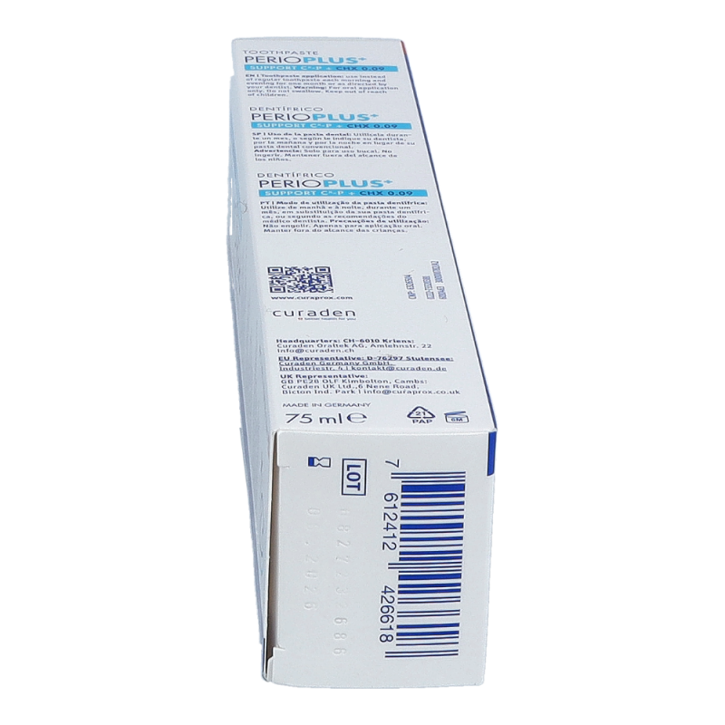 Perio Plus+ Support Zahnpasta ist frei von Sodium- Lauryl-Sulfat (SLS) und sichert so den Erfolg von CHX-Therapien gleichzeitig trägt es dank eigener Wirkstoffe zum Therapie-Erfolg bei.