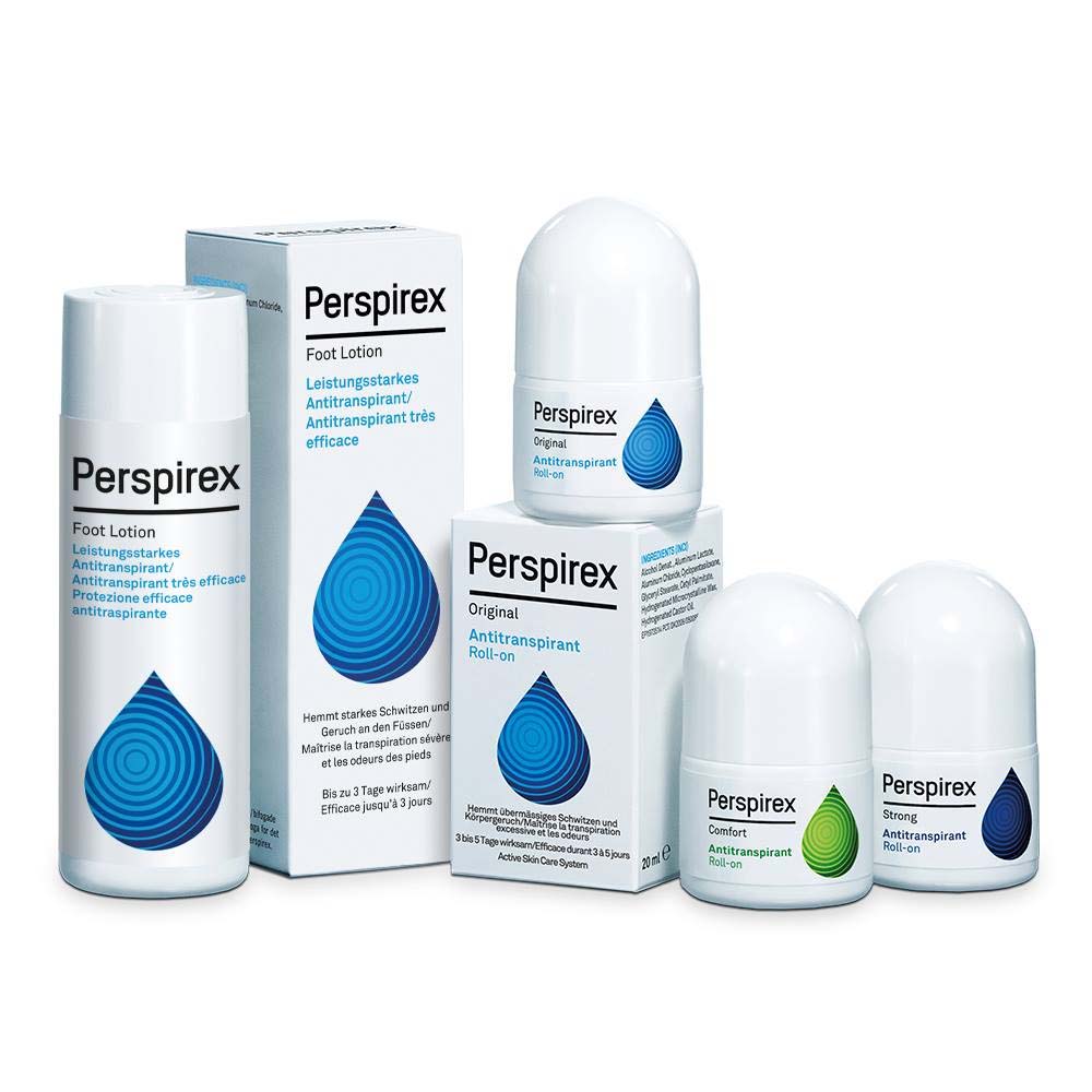 Perspirex ist ein Hochleistungs-Antitranspirant und bietet Ihnen im Alltag den optimalen Schutz vor Schweiß und Körpergeruch. Antitranspirante wie Perspirex sind für viele Menschen die bessere Wahl im Vergleich zu einem Deo. Während ein gewöhnlichesDeodorant primär den Geruch überdeckt (z.B. mit parfümierten Substanzen), unterbinden Antitranspirante die Schweißbildung an den behandelten Körperstellen (z.B. Achseln oder Fußsohlen) wesentlich und neutralisieren den Geruch. Seit Jahrzehnten vertrauen Millionen von Menschen weltweit dem klinisch nachgewiesenen Langzeitschutz von Perspirex. Bereits eine einzige Anwendung schützt Sie 3–5 Tage lang vor Schweiß und Körpergeruch. Perspirex enthält kein Parfum und ist dank seines Hautpflegekomplexes* auch für sensible Haut geeignet.