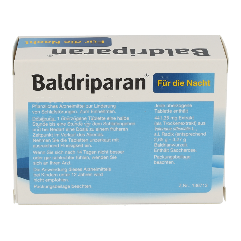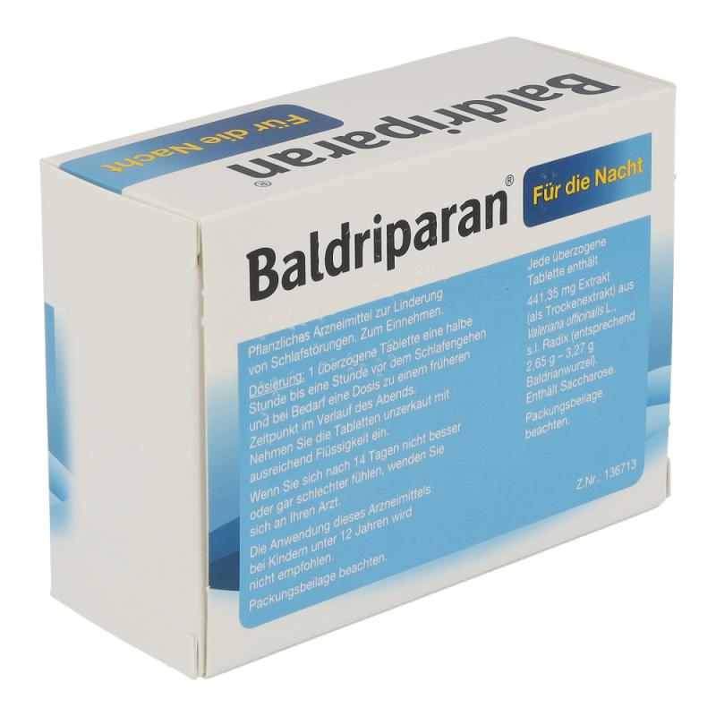 Baldriparan für die Nacht ist ein pflanzliches Arzneimittel das einen Trockenextrakt aus Baldrianwurzel enthält. Dieses Arzneimittel wird zur Linderung von Schlafstörungen bei Erwachsenen und Jugendlichen ab 12 Jahren angewendet – jetzt online bestellen und wieder durchschlafen!