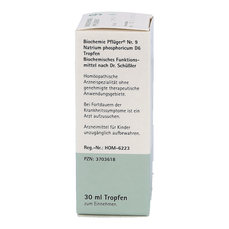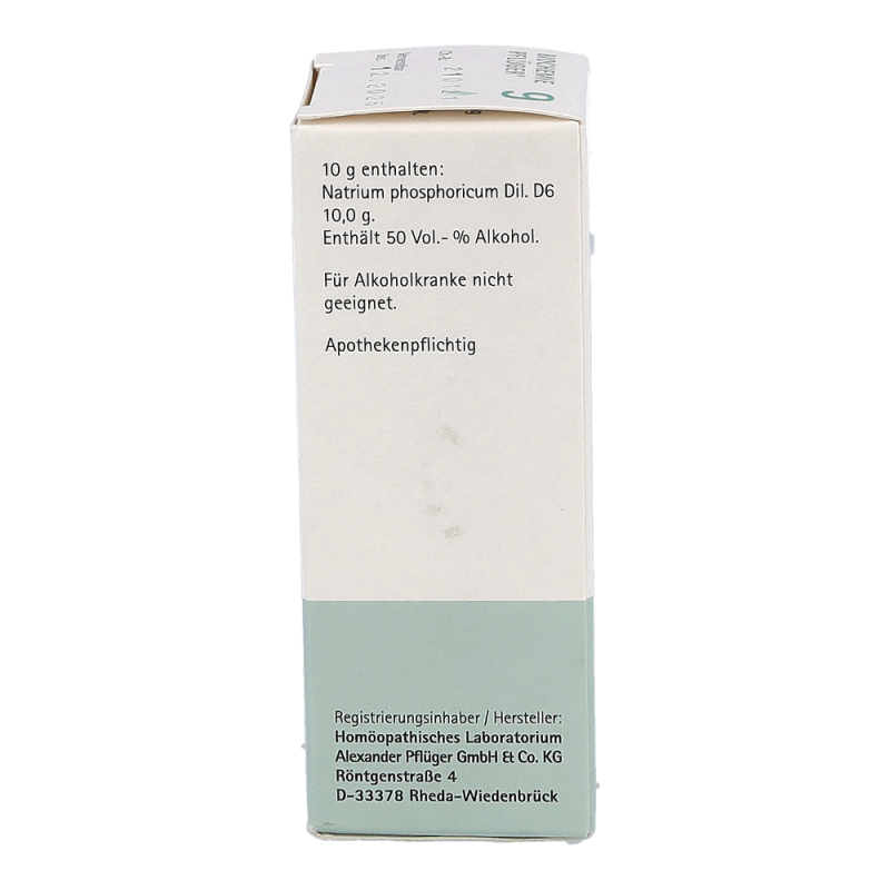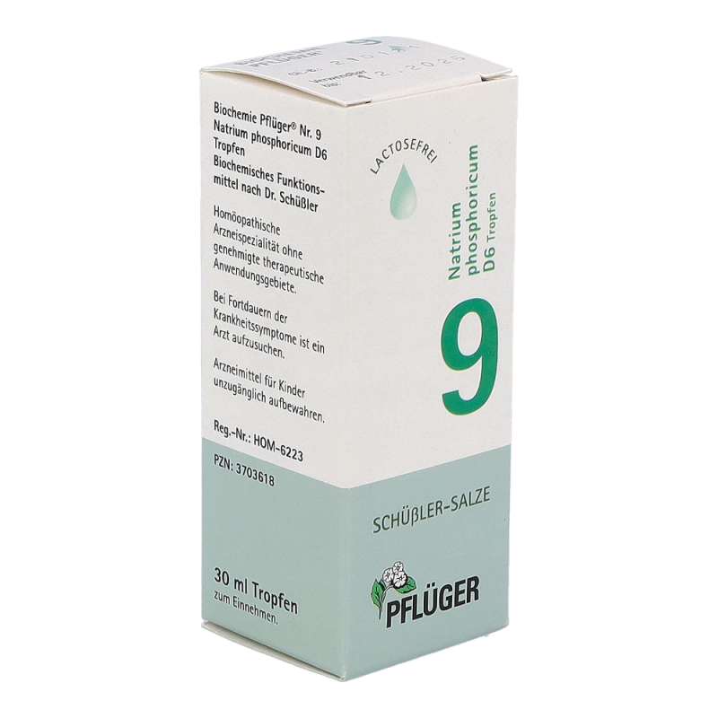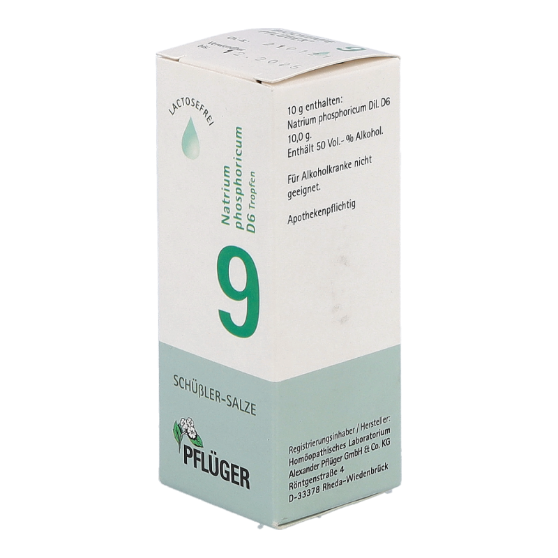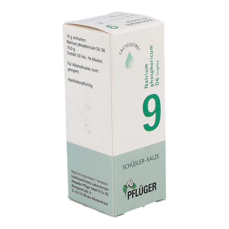 Pflüger Dr. Schüßler Nr. 9 Natrium Phosphoricum dient zur Aufrechterhaltung des Säure-Basen-Gleichgewichtes im Körper und regt den Stoffwechsel an. Natriumphosphat ist im menschlichen Körper weit verbreitet. So kommt es in den Gehirnzellen, Nerven, Muskeln, roten Blutkörperchen und im Bindegewebe vor. Typische Beschwerden sind Störungen des Säure-Basen-Haushaltes und Erkrankungen des Stoffwechsels.
