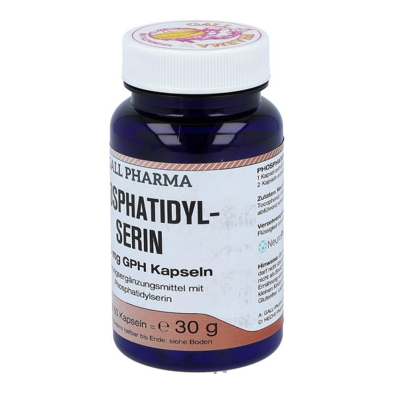 Gall Pharma Phosphatidylserin Kapseln 60 Stk. unterstützen die Gedächtnisleistung und verbessern die Konzentrations-, Merk- und Lernfähigkeit. Dies ist nicht nur wichtig um dem natürlichen Altern des Gehirns im fortgeschrittenen Lebensalter entgegenzuwirken, sondern kann auch in jungen Jahren bei Lern- und Konzentrationsschwierigkeiten eine Abhilfe schaffen. Des Weiteren wurden durch Zufuhr von Phosphatidylserin bereits Erfolge bei depressiven Verstimmungen und Hyperaktivität erzielt – als Standortapotheke bieten wir Ihnen 100% Sicherheit und ausschließlich Originalprodukte!