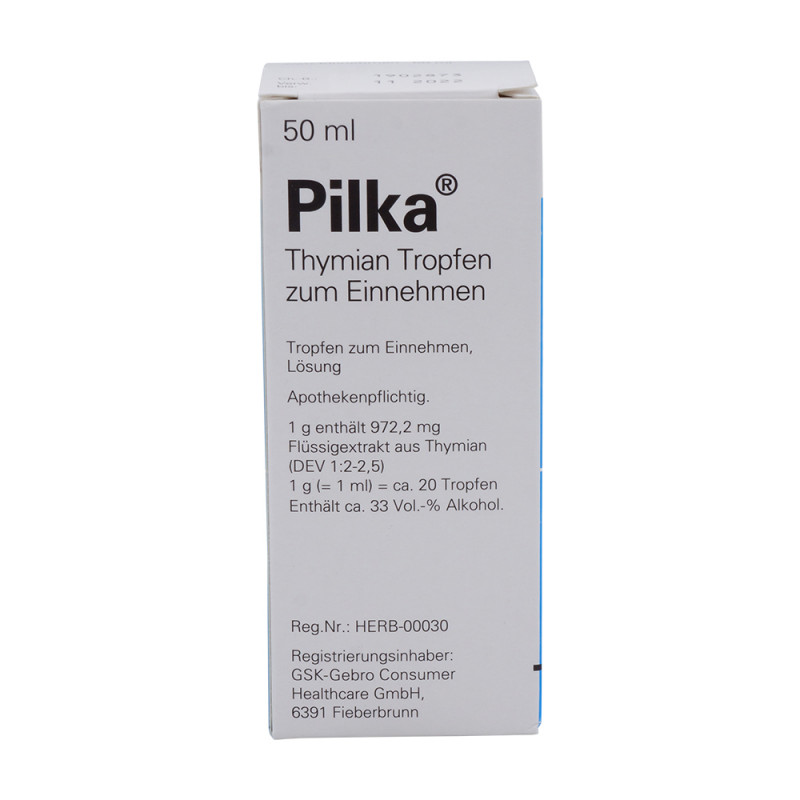 Pilka–Tropfen sind ein traditionelles pflanzliches Arzneimittel aus Thymiankraut-Extrakt und werden traditionell angewendet zur Behandlung von Husten in Verbindung mit einer Erkältung.