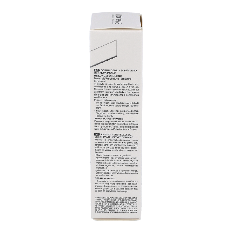 Postopyl Plus Emulsion bildet einen atmungsaktiven Film auf der Haut, der sie vor austrocknenden Umweltreizen, Keimen und Nässe schützt, die Verdunstung von in der Wunde im Übermaß auftretender Feuchtigkeit jedoch erlaubt. So bleibt das Feuchtigkeitsgleichgewicht des verletzten Gewebes erhalten und Juckreiz durch Austrocknung wird vermieden.