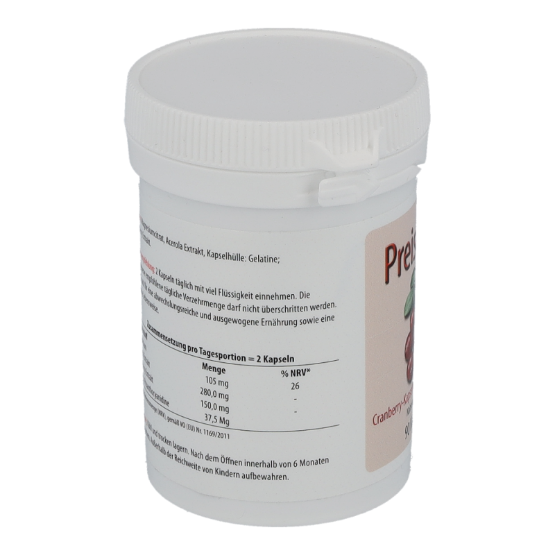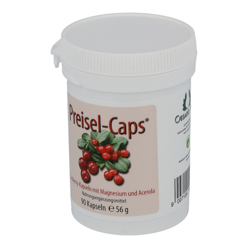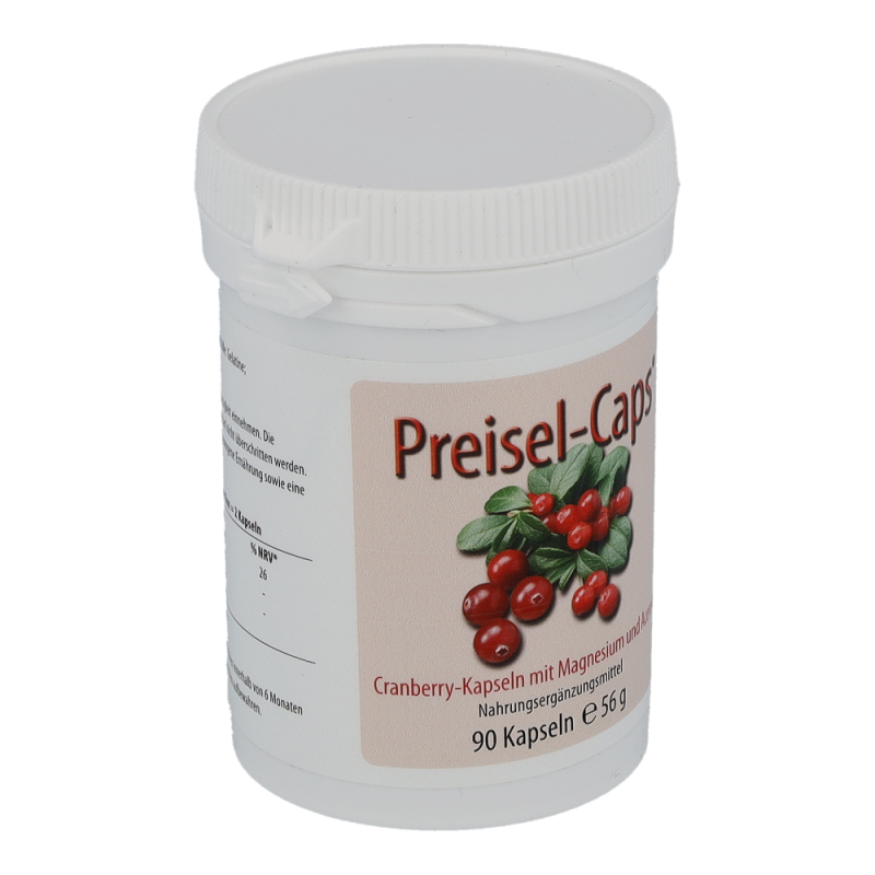 Preisel-caps Cranberry + Acerola + Magnesium sind ein Nahrungsergänzungsmittel mit einem hohen Gehalt an vermehrungsfähigen probiotischen Keimen, Präbiotika, Vitamin K und B-Komplex sowie einem standardisierten Cranberry-Extrakt. Die probiotischen Keime schützen den Darm und die Vaginalflora vor den typischen Folgen einer Infektionsbehandlung mit Antibiotika.