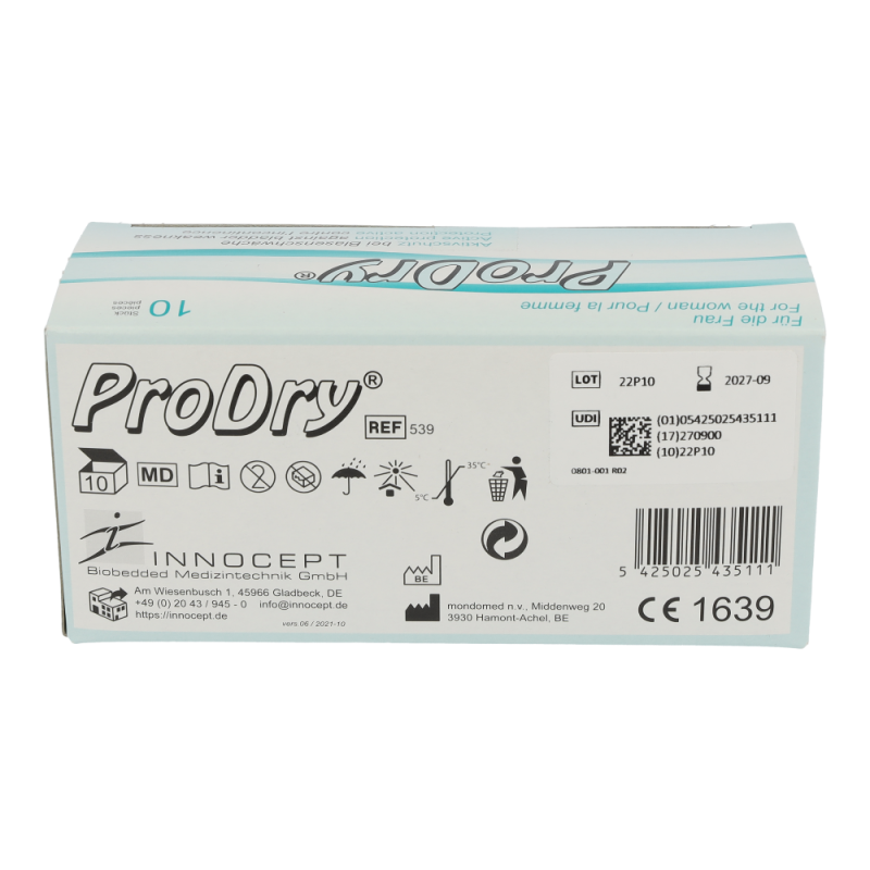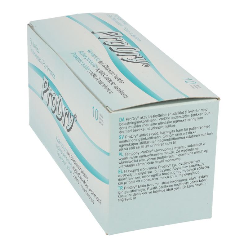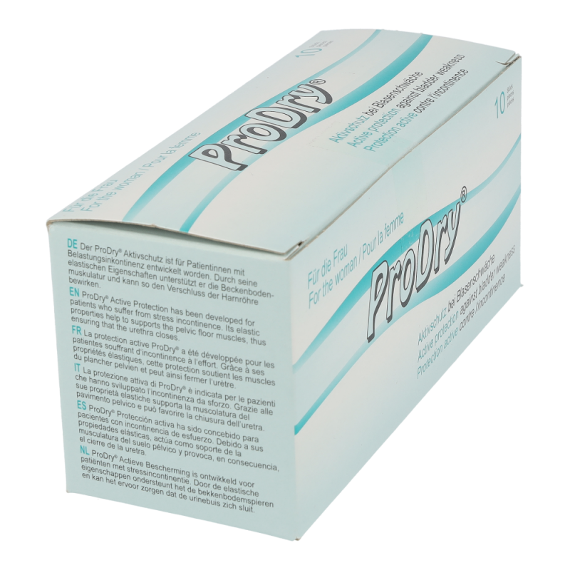 Der ProDry Aktivschutz ähnelt in Aussehen und Handhabung einem Tampon, hat aber keine aufsaugende Funktion. ProDry übt durch seine elastischen Eigenschaften Druck auf die vordere Scheidenwand aus. So wird der Blasenhals gestützt und die natürliche Verschlussfunktion der Harnröhre kann wiederhergestellt werden. Ein kleiner Aktivschutz genügt, um wieder unbeschwert lachen zu können, Sport zu treiben und engagiert am Leben teilzunehmen.