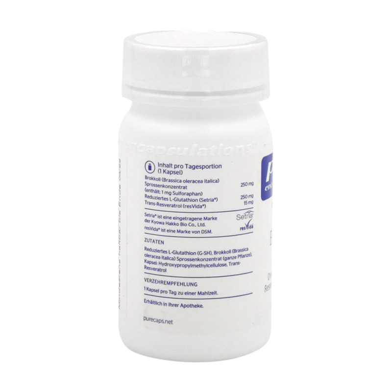 Brokkoli Plus Kapseln von Pure Encapsulations enthält die Essenz aus Brokkolisprossen, Resveratrol sowie Glutathion. Brokkolisprossen liefern wertvolles Sulforaphan für die Tätigkeit des Nrf2-Proteins in den Körperzellen. Der innovative Dreifach-Komplex unterstützt einen bewussten Lebensstil – ideal zur Ergänzung einer ausgewogenen Ernährung und für den Neustart unseres Körpers. Das „Superfood“ Brokkoli ist über kurz oder lang ein optimaler Begleiter. Pure Encapsulations Brokkoli plus basiert auf hochwertigen Reinsubstanzen. Höchstmögliche Qualitätsstandards garantieren, dass die verwendeten Inhaltsstoffe maximal verträglich sind und eine optimale Bioverfügbarkeit aufweisen. Deshalb gelten wir auch weltweit als das Original bei Reinsubstanzen. Zum leichten Leben bedarf es wenig. Auch auf künstliche Farb- und Geschmacksstoffe hat man bei Pure Encapsulations verzichtet.
