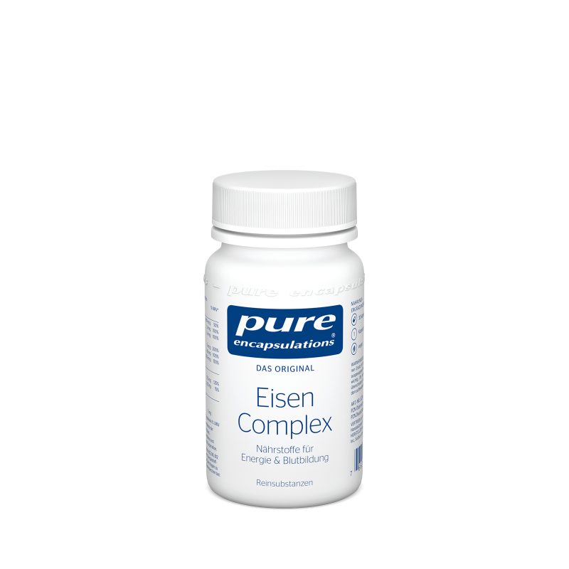 Ein hektischer Alltag verlangt uns einiges ab. Unterstützung bietet dabei Eisen: Es trägt zur Verringerung von Müdigkeit und Ermüdung bei, ist aber auch an einem gesunden Energiestoffwechsel sowie an der Bildung von roten Blutkörperchen beteiligt. Da Eisen am besten im Team arbeitet, enthält Eisen Complex von Pure Encapsulations® auch Co-Faktoren wie B-Vitamine und Vitamin C, das die Eisenaufnahme erhöht.