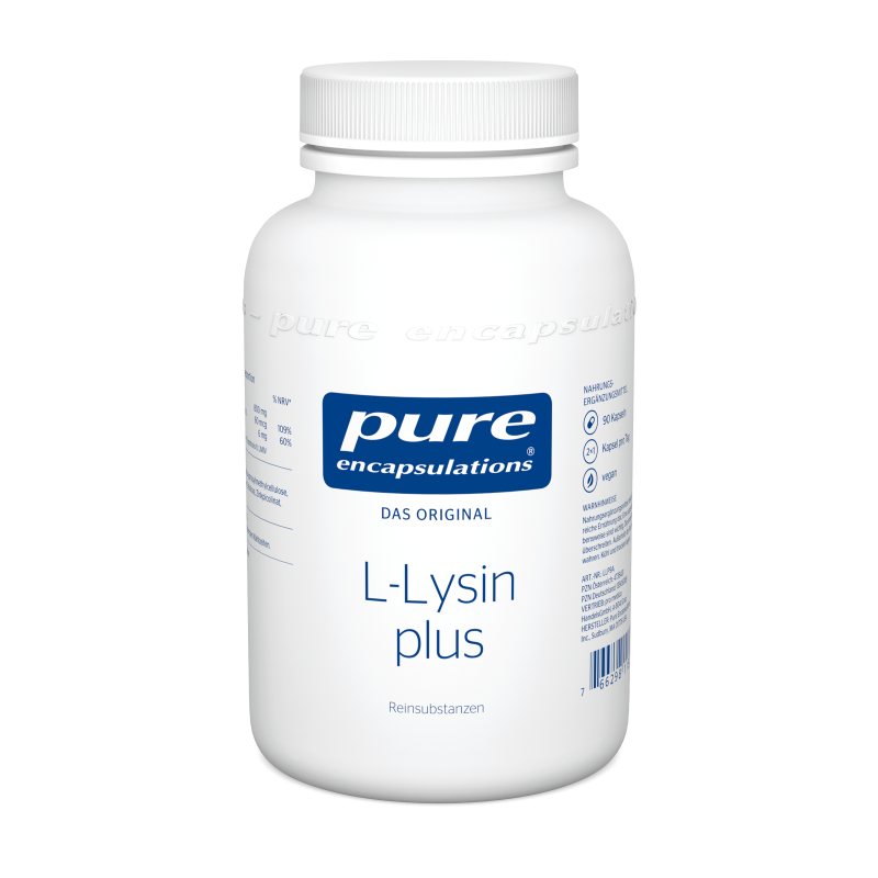 L-Lysin plus von Pure Encapsulations® enthält neben der Aminosäure Lysin auch die Spurenelemente Selen und Zink, welche einen Beitrag zur normalen Funktion des Immunsystems sowie zum Schutz der Zellen vor oxidativem Stress leisten. Das Nahrungsergänzungsmittel aus Reinsubstanzen ist ideal zur Deckung eines erhöhten Bedarfs sowie zur Bedarfsdeckung bei primär vegetarischer oder veganer Ernährungsweise geeignet. Die Aminosäure L-Lysin ist für den Organismus essenziell und auch an der endogenen Synthese von L-Carnitin beteiligt. L-Lysin plus ist in Kapselform erhältlich und zeichnet sich durch eine gute Verträglichkeit auch für sensible Personen aus.