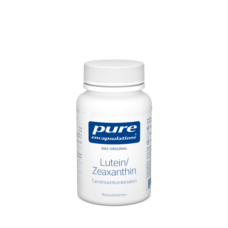 Lutein und Zeaxanthin werden den sogenannten Carotinoiden (sekundäre Pflanzenstoffe) zugeordnet. Beide Verbindungen kommen natürlich in der Netzhaut, v.a. der Makula lutea, und der Linse des menschlichen Auges vor. Die Macula lutea (Gelber Fleck) ist für das zentrale Sehen verantwortlich und jener Bereich der Netzhaut mit der größten Dichte an Sehzellen. Pure Encapsulations® Lutein/Zeaxanthin
