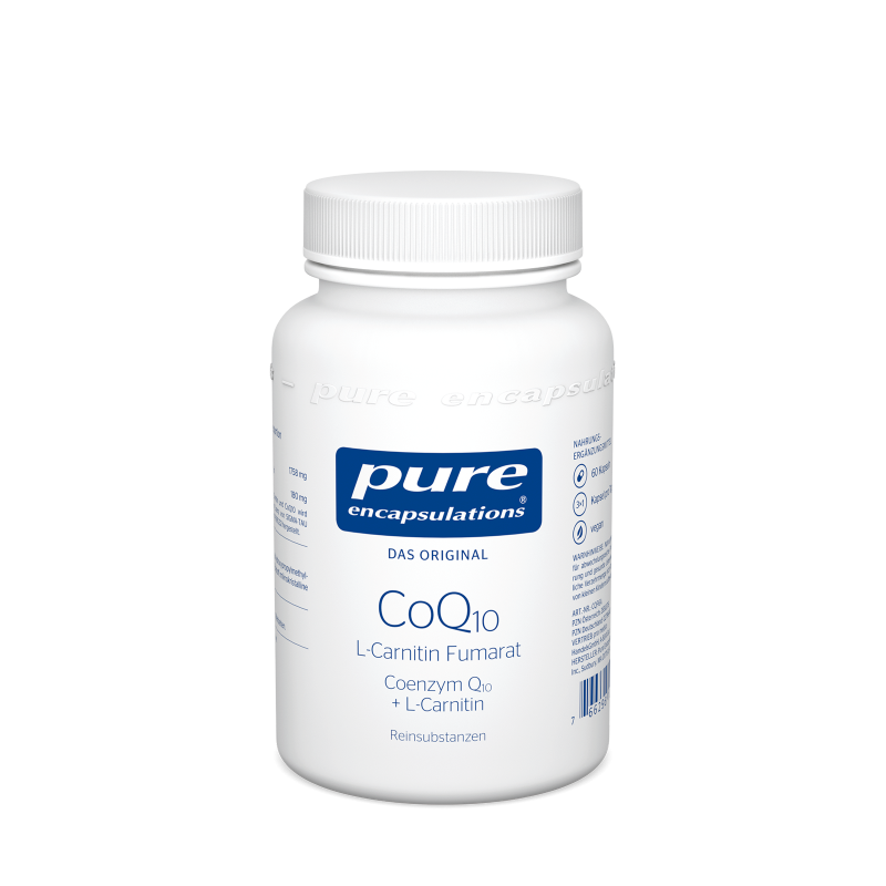 Coenzym Q10 und Carnitin in einer Kapsel: Die beiden Substanzen Coenzym Q10 und L-Carnitin werden zu den Vitaminoiden gezählt. Die an L-Carnitin gebundene Fumarsäure entsteht natürlich auch als Zwischenprodukt im Zitronensäure-Zyklus. Pure Encapsulations® CoQ10 L-Carnitin Fumarat jetzt permanent preisgesenkt bestellen!