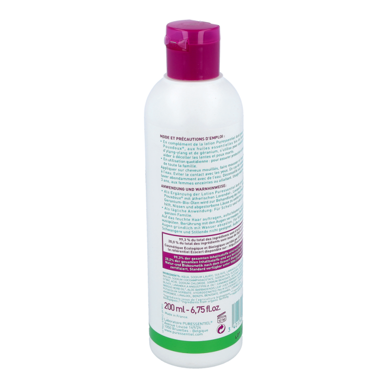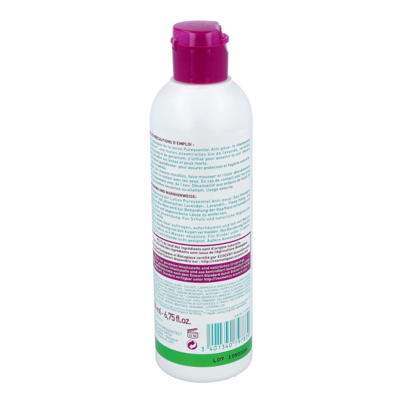 Puressentiel Lä use Shampoo sensible Haut 200 ml mit ä therischen Lavendel-, Lavandin-, Ylang-Ylang- und Geranium-Bio-Ö len wird zur Behandlung der Kopfhaut verwendet und hilft, Nissen und abgestorbene Lä