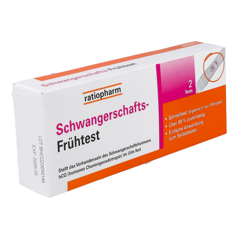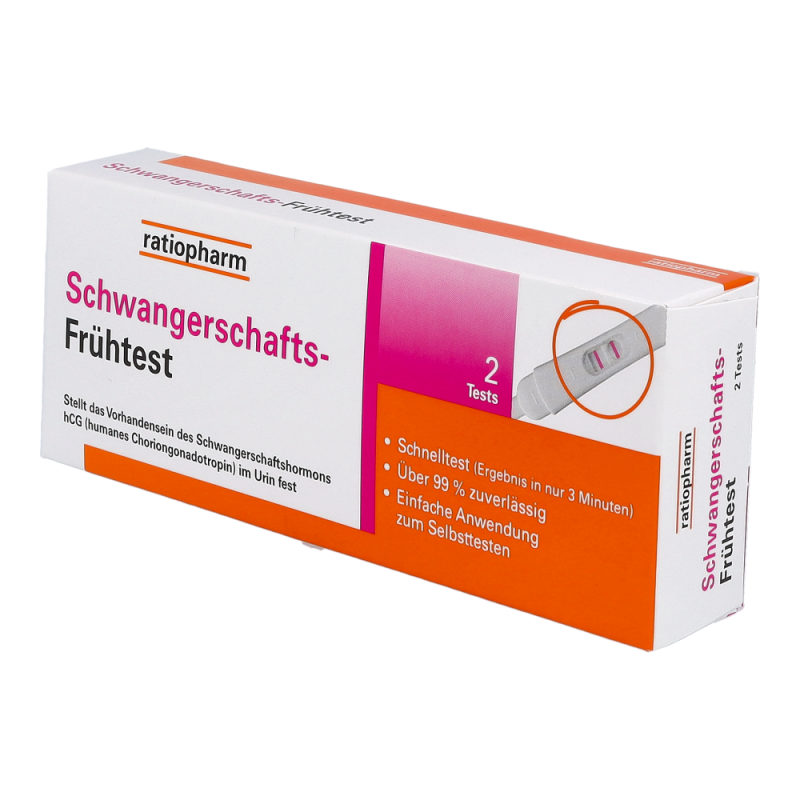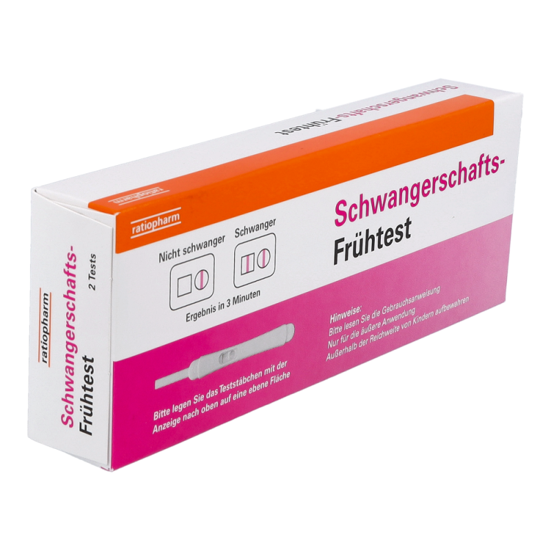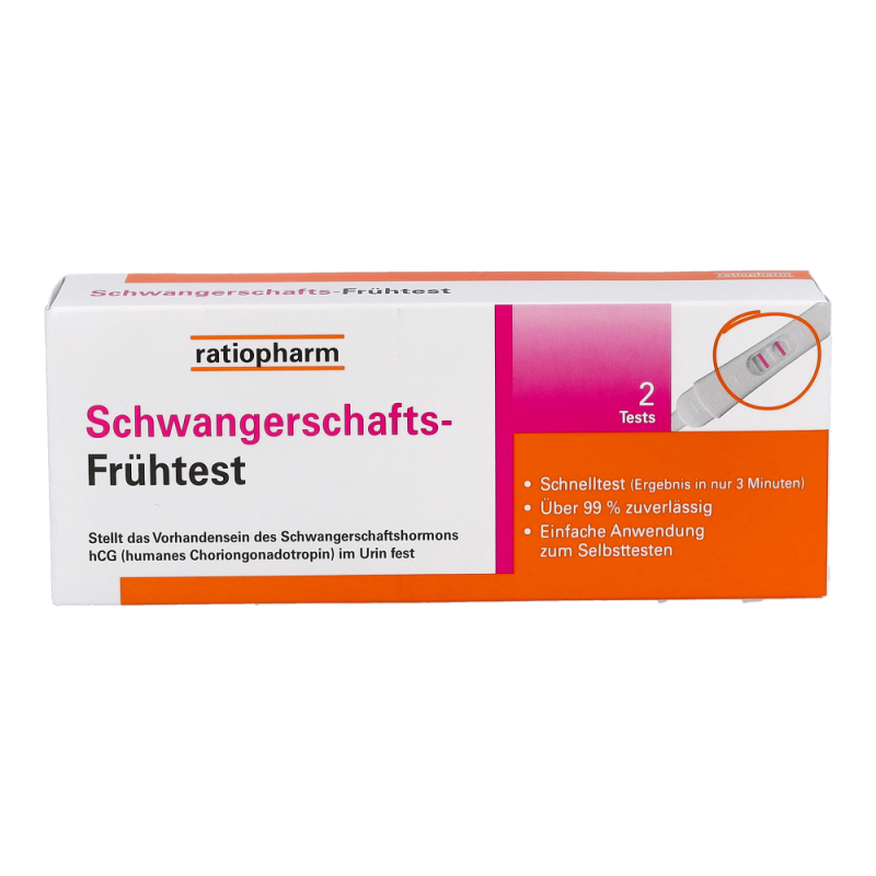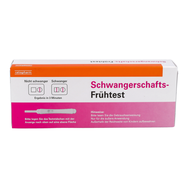 Ratiopharm Schwangerschafts-Frühtest zur frühzeitigen Erkennung einer Schwangerschaft. Ergebnis in nur 3 Minuten mit über 99% Zuverlässigkeit. Einfache Anwendung. Erkennung der Schwangerschaft über das Schwangerschaftshormon hCG (humanes Choriongonadotropin) im Urin.