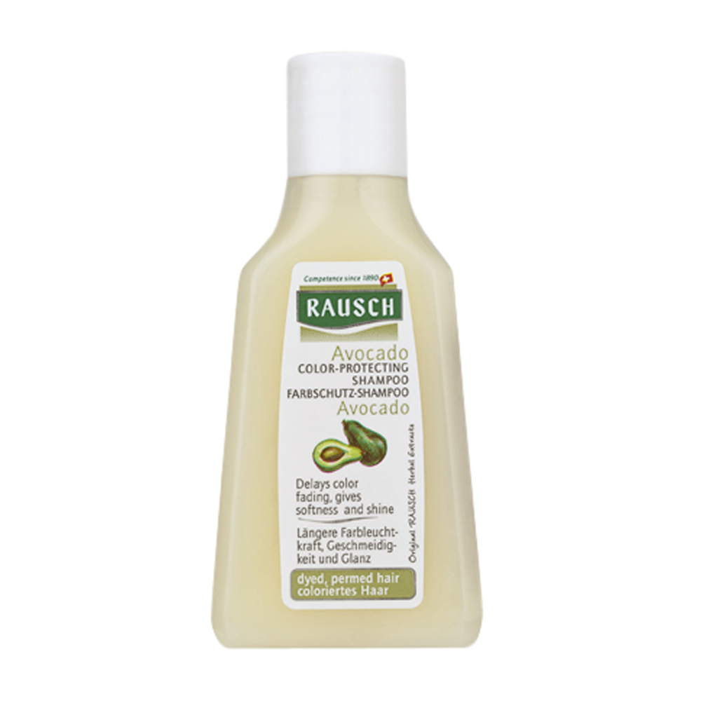 Rausch Avocado Farbschutz Shampoo garantiert coloriertem, gesträhntem Haar verlängerte, intensive Farb-Leuchtkraft und Glanz. Verhindert schnelles Ausbleichen.Mit kostbarem Avocado-Öl und Zinnkrautextrakt.
