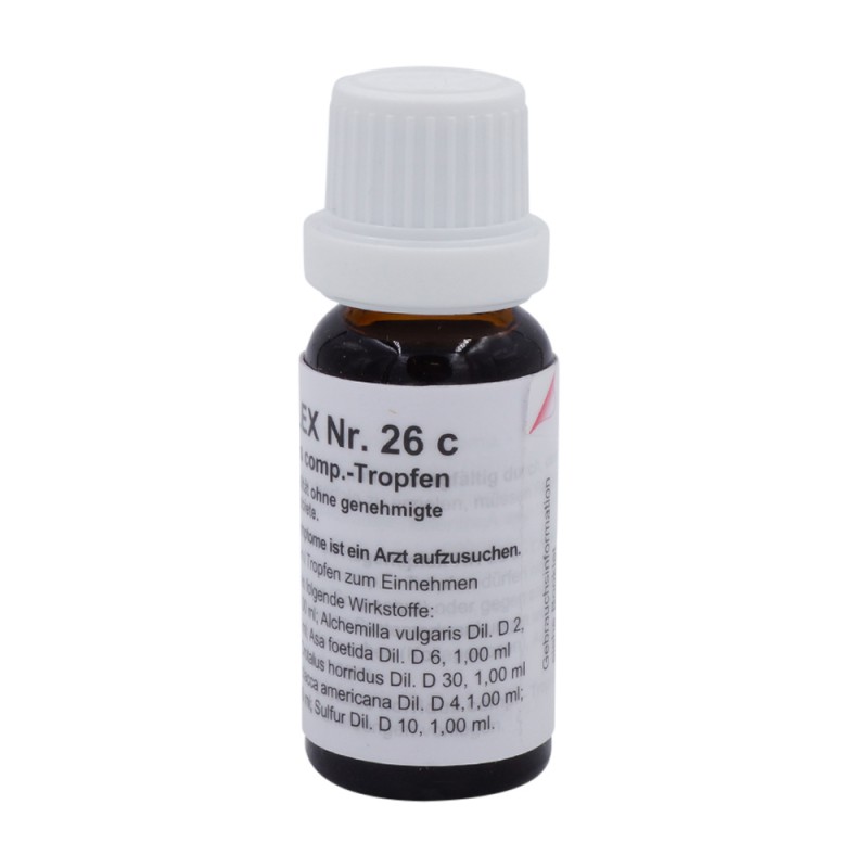 Regenaplex Nr. 26C dient vorrangig zur Lypfreinigung. Die quasi nach einem Baukastensystem zusammengestellten Regenaplexe sind homöopathische Komplexmittel mit jeweiligen Nummernbezeichnungen.