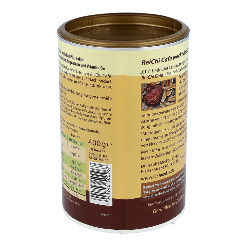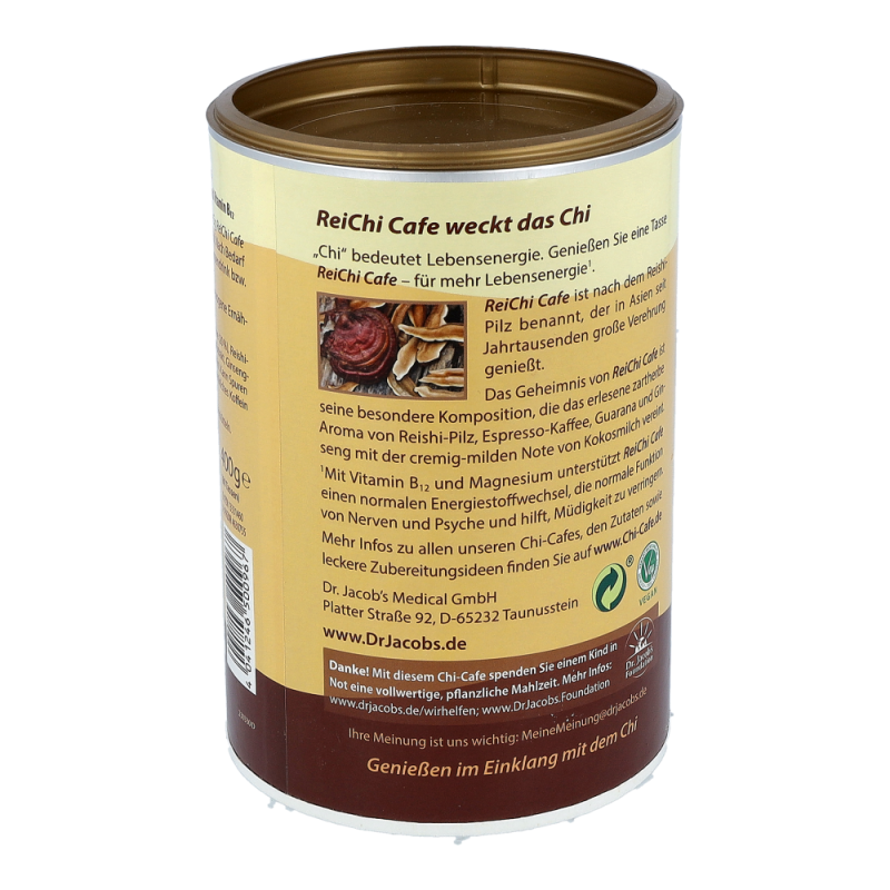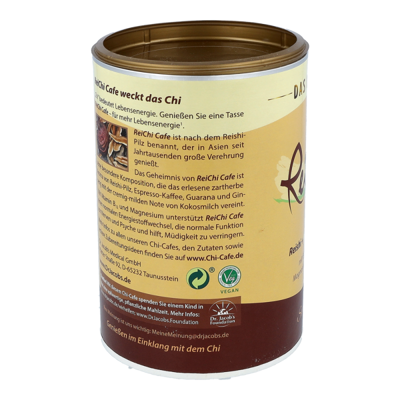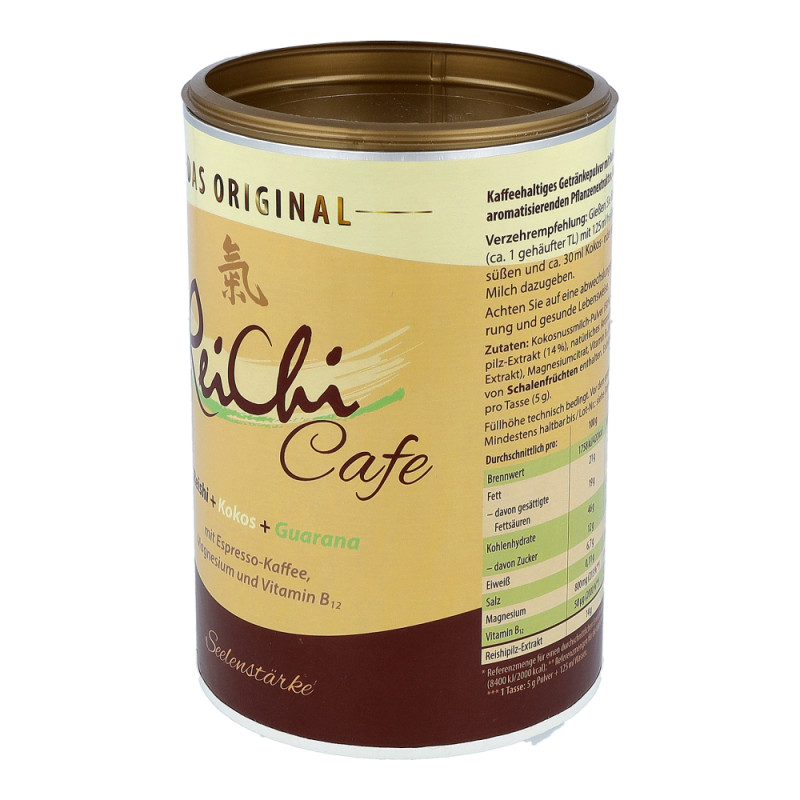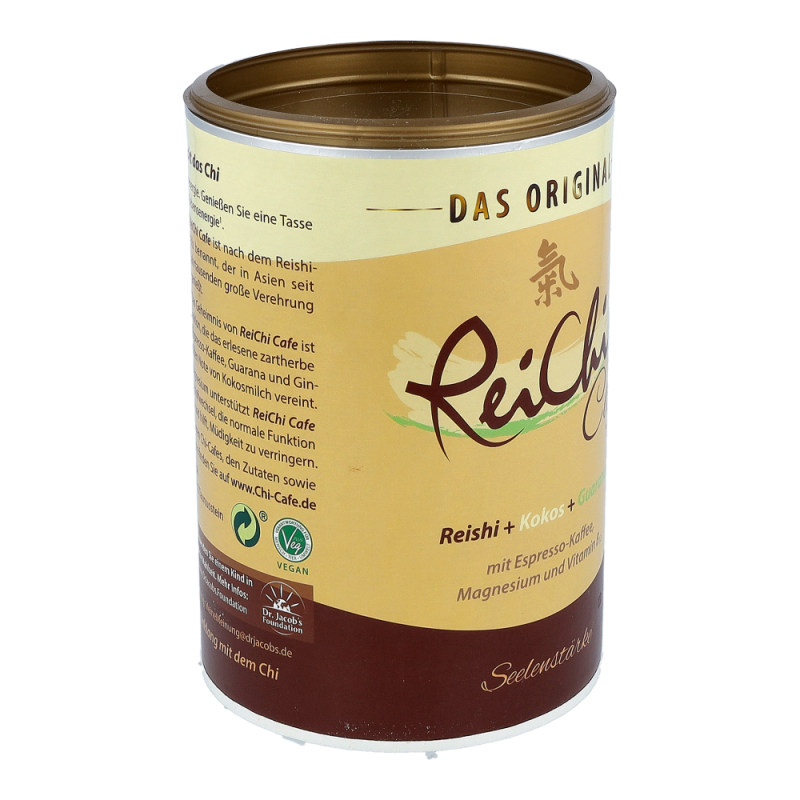 ReiChi Cafe hat seinen Namen vom Reishi-Pilz, der in Asien bereits seit Jahrtausenden große Verehrung genießt. „Chi“ heißt übersetzt Lebenskraft. Erwecken Sie Ihre Lebenskraft* und genießen Sie eine Tasse ReiChi Cafe. Das Besondere an ReiChi Cafe ist seine einzigartige Komposition, die das erlesene zartherbe Aroma von Reishi-Pilz, Ginseng, Guarana und Espresso-Kaffee mit der mild-cremigen Note von Kokosmilch vereint – nur mit hohem Rabatt, denn wir pulverisieren Preise!