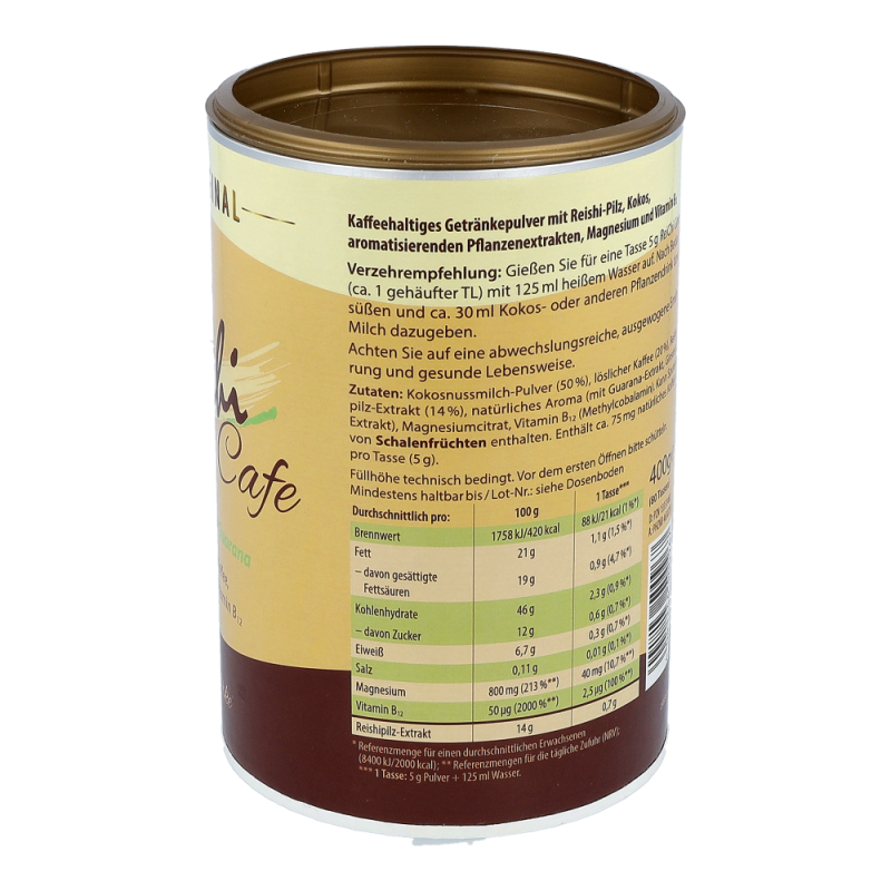 *)Pro Tasse ReiChi Cafe sind ca. 75 mg Koffein enthalten, das die Konzentration verbessert und die Aufmerksamkeit erhöht.