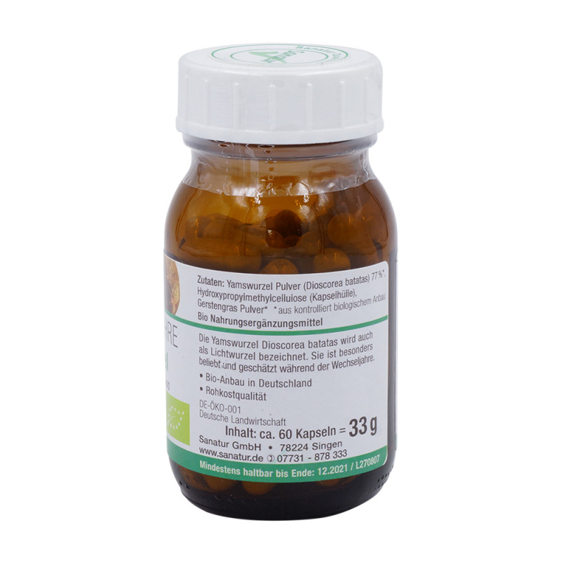 Sanatur Bio Yamswurzel Kapseln ermöglicht die Aufnahme von Lichtenergie. Das Produkt enthält ausschließlich biologische Inhaltsstoffe.