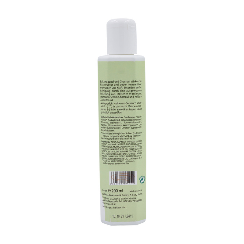 Sanoll Shampoo: Strukturshampoo Balsampappel verleiht feinem Haar Kraft und Glanz! Balsampappel und Ghassoul stärken die Haarstruktur und geben feinem Haar mehr Leben und Kraft. Besonders sanfte Reinigung durch die ausgewogene Mischung aus indischer Waschnuss, marokkanischem Ghassoul und mildem Zuckertensid.