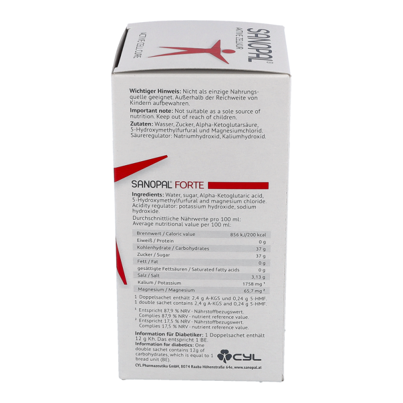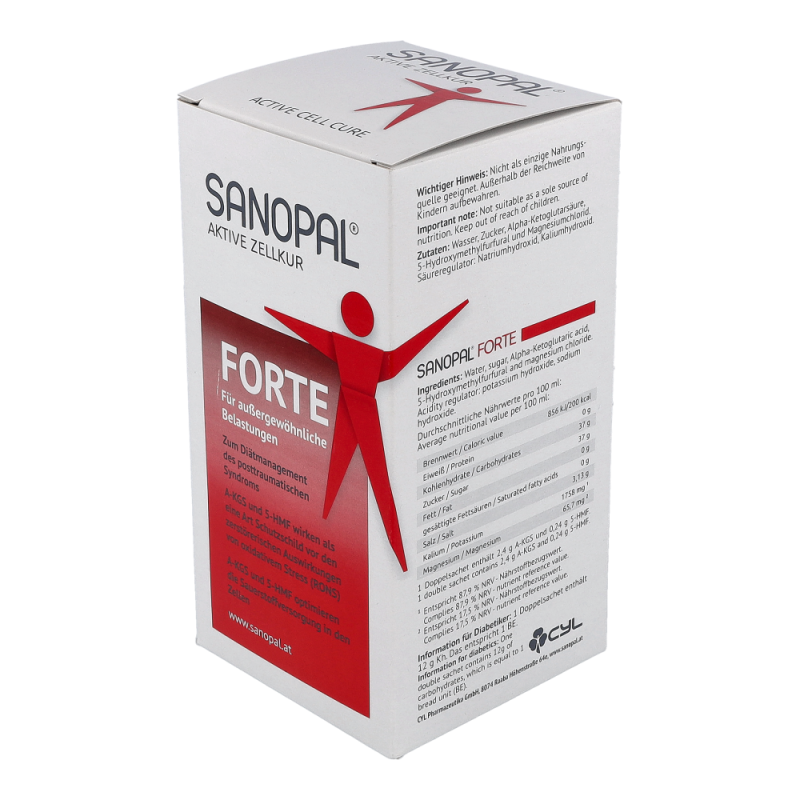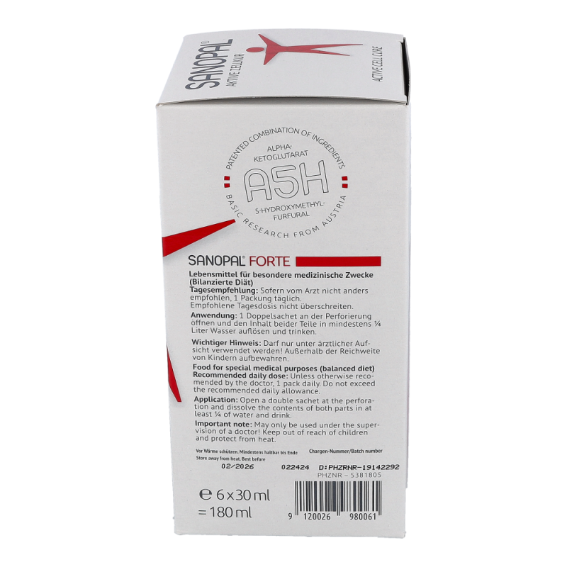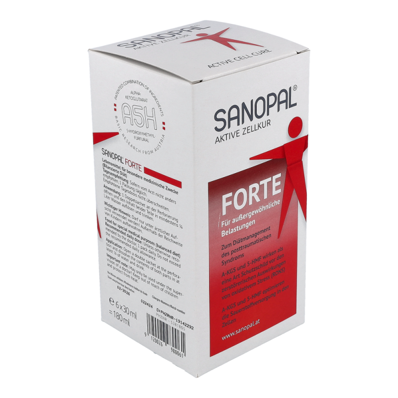 SANOPAL FORTE enthält A5H – eine patentierte Wirkstoff-Kombination von AKG (Alpha-Ketoglutarat) und 5-HMF (5-Hydroxymethylfurfural).