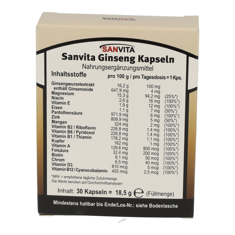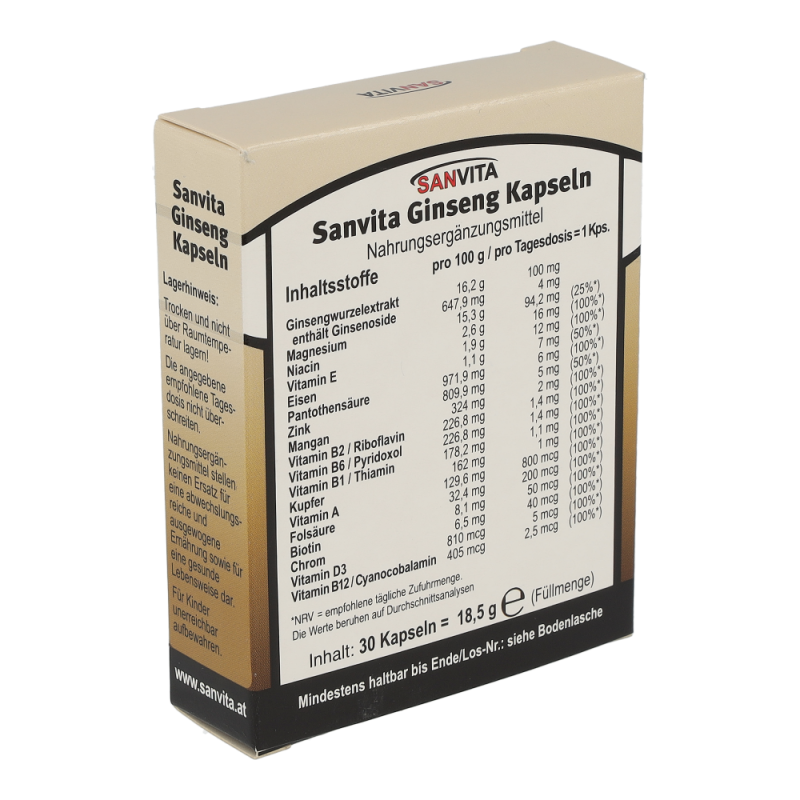 Sanvita® Ginseng Kapseln sind ein hochwertiges Kombinationspräparat zur Erhaltung und Stärkung Ihrer geistigen und körperlichen Leistungsfähigkeit.