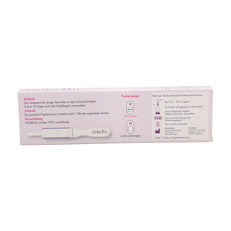 Der viobella Schwangerschafts-Frühtest zeigt bereits schon 10 Tage nach einer möglichen Empfängnis an, ob eine Frau schwanger ist oder nicht.Viobella ist einfach in der Anwendung und zeigt zuverlässig und schnell ein eindeutiges Ergebnis an.