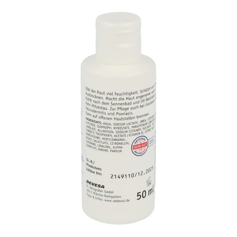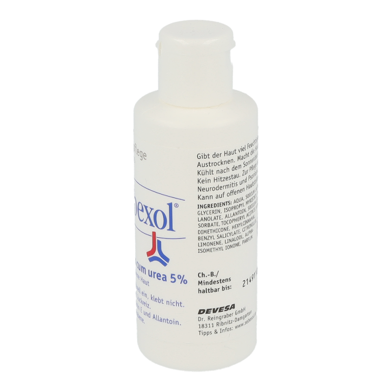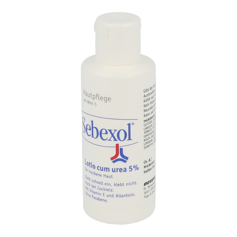 Sebexol® Lotio cum urea 5% wurde zur Pflege des ganzen Körpers bei trockener Haut und Juckreiz entwickelt. Vor allem zur Intensivpflege wundfreier Haut bei Neurodermitis, Schuppenflechte (Psoriasis), trockener Altershaut, schuppenden Ekzemen, übermäßiger Verhornung und Fischschuppenkrankheit (Ichthyosis) ist diese Emulsion bestens geeignet.