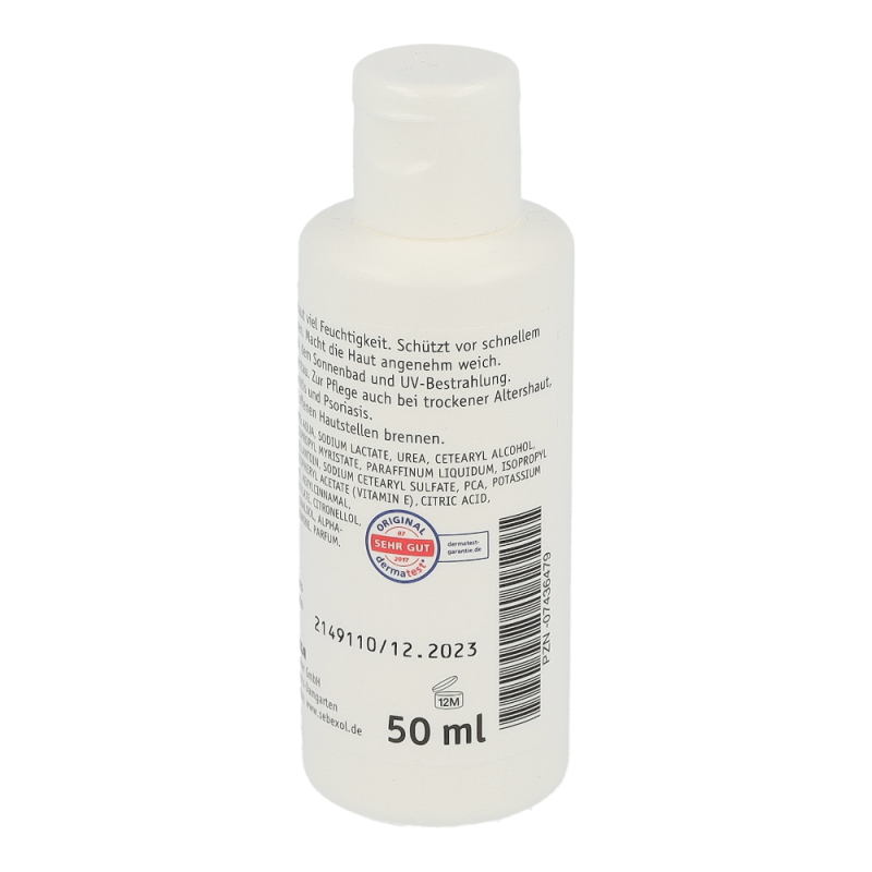 Sebexol® Lotio cum urea 5% stillt den Juckreiz, zieht schnell ein und klebt nicht. Es entsteht kein Hitzestau. Sie enthält wichtige Feuchthaltresubstanzen wie Glycerin, Harnstoff und Milchsäure. Sebexol® Lotio cum urea 5% macht die Haut angenehm weich und zart, verbessert die Elastizität und stabilisiert den natürlichen Säureschutzmantel.