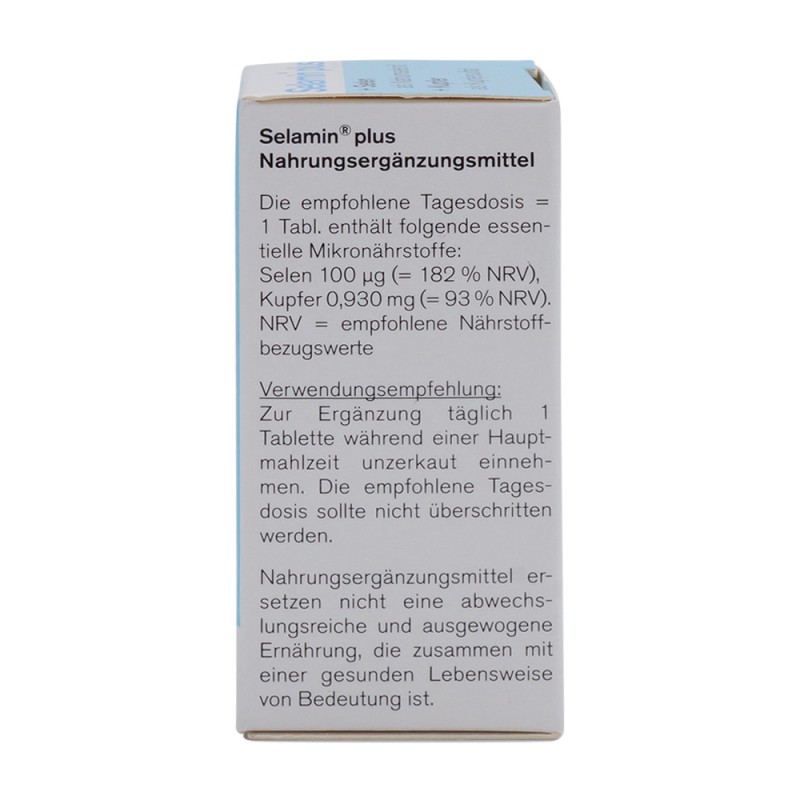 Selamin Plus Tabletten sind ein Nahrungsergänzungsmittel mit Selen und Kupfer. Selen und Kupfer sind wichtige Komponenten des Enzymsystems zur Steuerung zahlreicher Körperfunktionen.