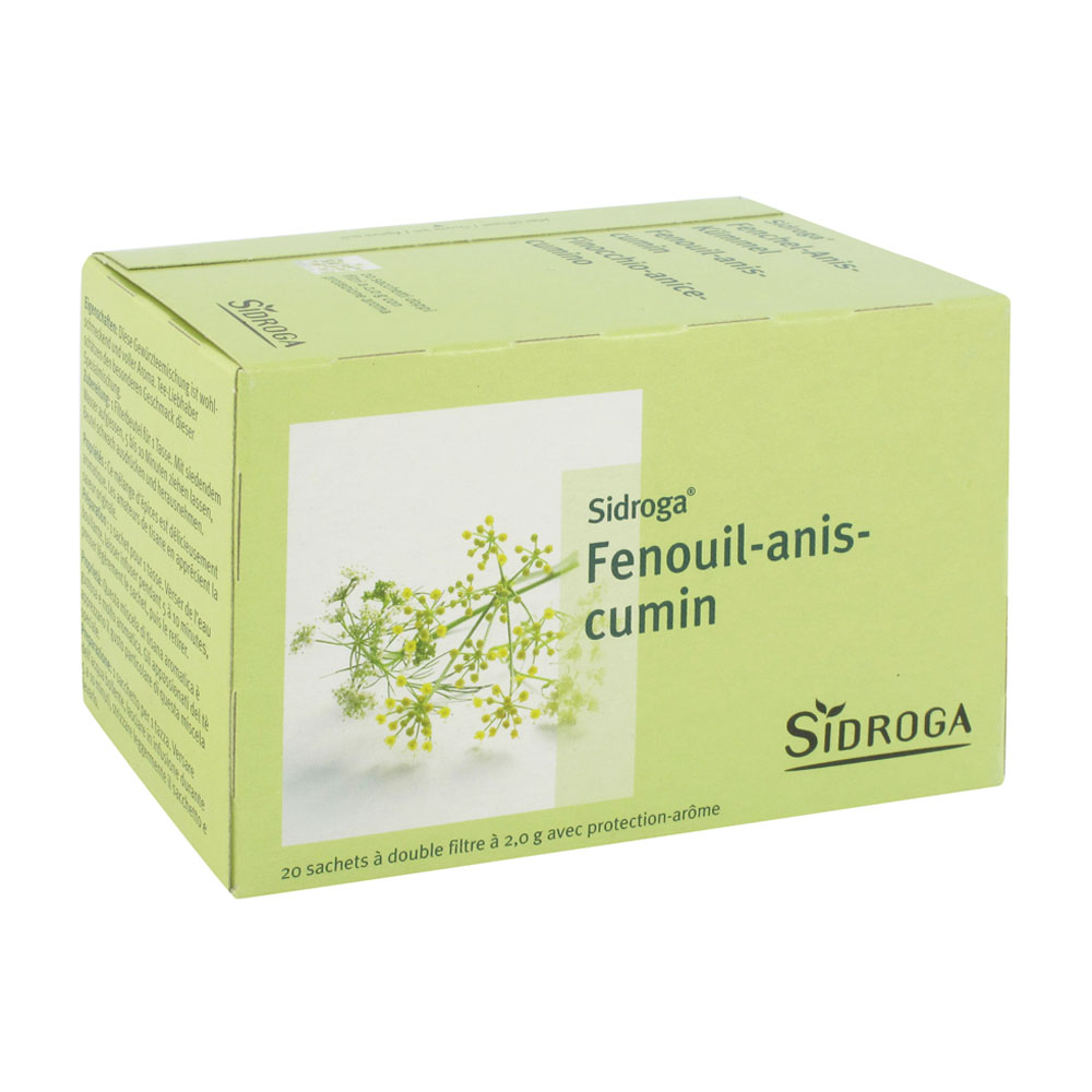 Sidroga Fenchel-Anis-Kümmel ist ein pflanzliches Arzneimittel bei Magen-Darm-Beschwerden. Sidroga Fenchel-Anis-Kümmel wird angewendet bei Magen-Darm-Beschwerden wie Völlegefühl, Blähungen und leichten krampfartigen Magen-Darm-Störungen sowie bei nervösen Herz-Magen-Beschwerden..