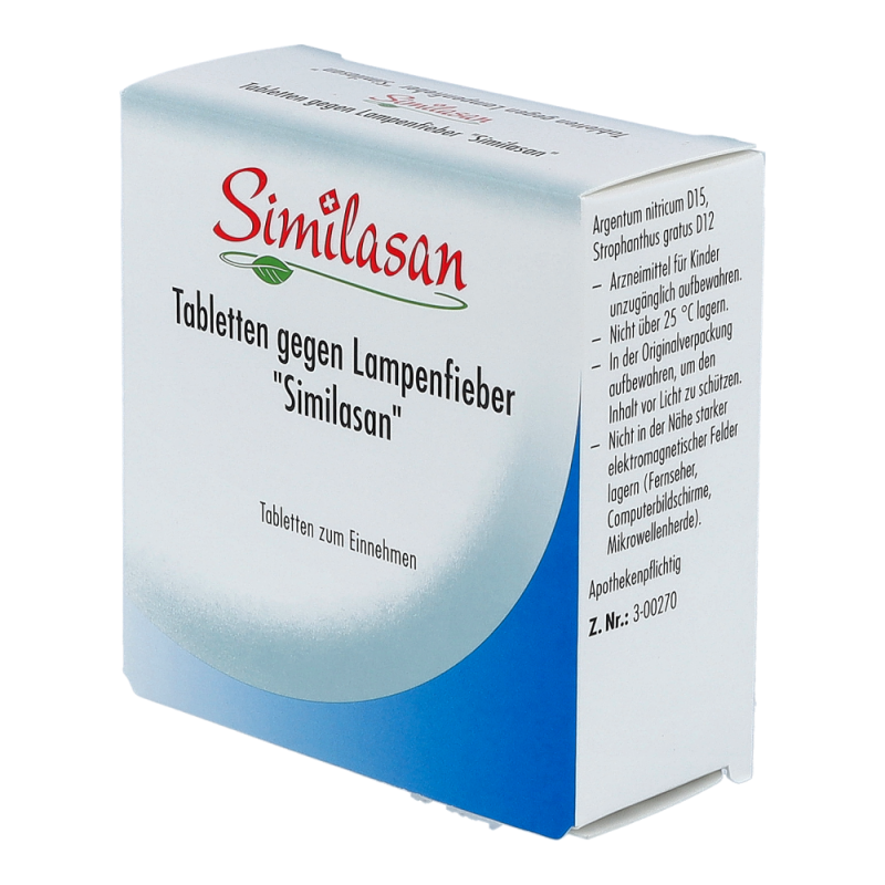 Similasan Lampenfieber Tabletten sind ein homöopathisches Arzneimittel zur Behandlung von nervöser Unruhe unterschiedlicher Arten. So können die Similasan Lampenfieber Tabletten unter anderem bei auf Nervosität beruhender Unfähigkeit, sich zu konzentrieren, Lampenfieber, diversen Angstzuständen und nervösen Darmproblemen, helfen. Auch in Prüfungs- und Stresssituationen stellt das natürliche Arzneimittel eine solide und gut verträgliche Möglichkeit dar, Geist und Psyche zu stärken. Wie andere homöopathische Mittel weist auch Similasan Lampenfieber Tabletten keine direkten Nebenwirkungen auf, und kann daher sowohl von Erwachsenen, als auch von Kindern ab 6 Jahren, über einen längeren Zeitraum hinweg eingenommen werden. Die Tabletten eignen sich sowohl zur Therapie von chronischen, als auch akuten Beschwerden..