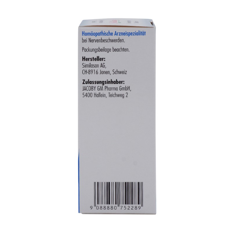 Nerventropfen „Similasan“ sind ein homöopathisches Arzneimittel. Die Homöopathie versteht sich als Regulationstherapie bei akuten und chronischen Krankheiten. Die Anwendungsgebiete leiten sich von den homöopathischen Arzneimittelbildern ab. Dazu gehört die unterstützende Behandlung von: Innerer Unruhe mit Herzklopfen, Angstgefühlen, Erregtheit, innerem Zittern, Würgegefühl im Brustraum und in der Kehle, neuro-vegetativen Störungen mit Blähungen, Aufstoßen, Würgen, Magen-Darm- Verkrampfungen, Ängstlichkeit, Verkrampftheit, nervösen Schlafstörungen, oberflächlichem, unruhigem Schlaf, Einschlafstörungen, nächtlichem Herzklopfen, nervösen Herzbeschwerden, Herzunruhe, Herzklopfen und Kreislaufschwäche mit rascher Ermüdung, Schwindel.