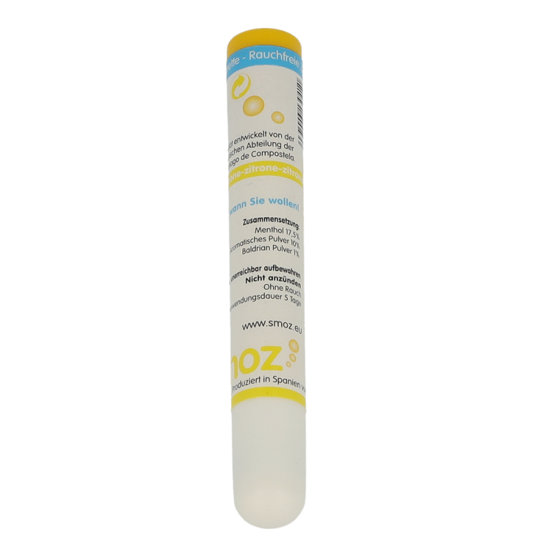 Smoz Rauchfreie Zigarette ist eine Zigarettenimitation mit dem Zweck, die Gewohnheit des Rauchens umzustellen. Die wesentlichen Vorteile von Smoz sind die täuschend echte Nachbildung einer Zigarette und die darin enthaltenen Granulate mit patentierten Inhaltsstoffen. Smoz ist mit allen herkömmlichen Entwöhnungsmethoden kombinierbar. Dieses Produkt erhalten Sie in den Geschmacksrichtungen Minze, Zitrone und Cappuccino.