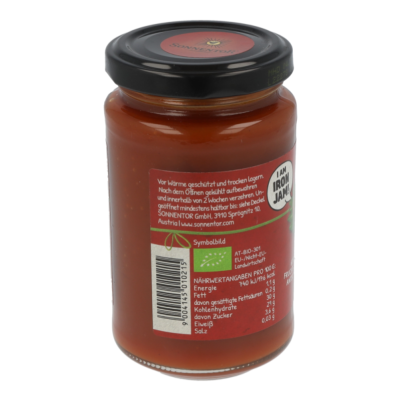Wahre Helden stehen ihr Männlein im Walde. Die Iron Jam unter den Fruchtaufstrichen überzeugt mit 60 % Fruchtanteil. Unter dem purpurroten Mäntelein steckt die pure Hagebutte und die Süße von Äpfeln. Das kannst du dir aufs Brot schmieren. Und in Torten, Mehlspeisen und Joghurt. Starkes Früchtchen!