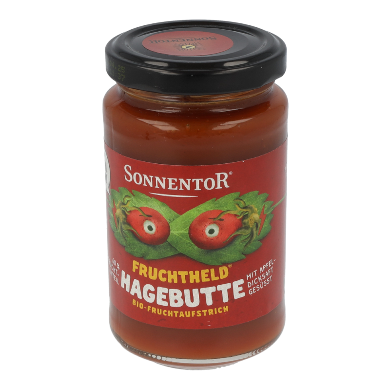 Zutaten: Hagebutten bio (60 %), Apfelsaftkonzentrat bio (36 %), Geliermittel: Pektin