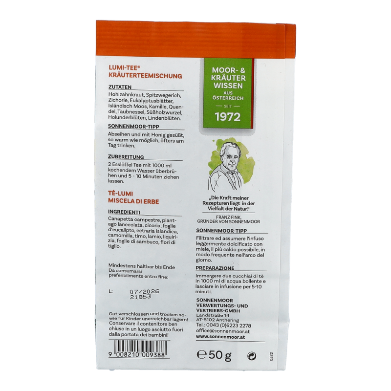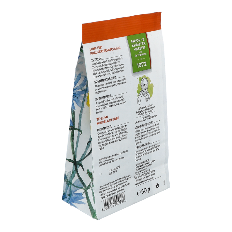 Hohlzahnkraut, Spitzwegerich, Zichorie, Eukalyptusblätter, Isländisch Moos, Kamille, Quendel, Taubnessel, Süßholzwurzel, Holunderblüten, Lindenblüten