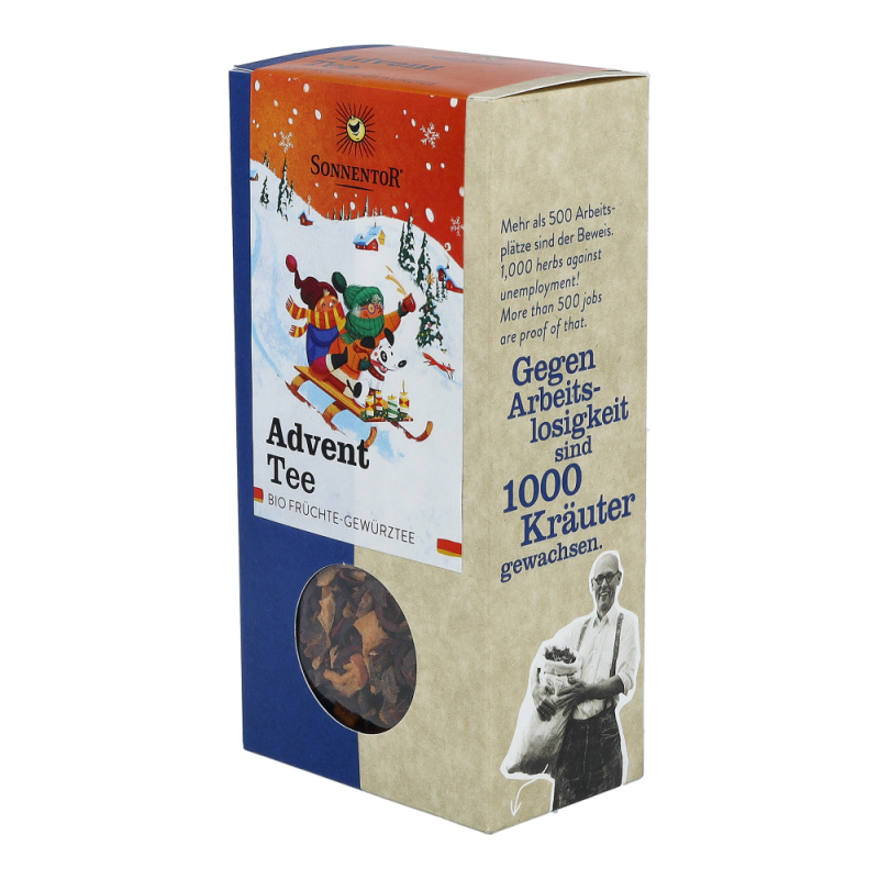 Der Sonnentor Advent Tee in der losen Variante (100 g) lässt weihnachtliche Stimmung in Ihrer Teetasse aufkommen! Nelken und Zimt geben dem Tee eine besinnliche Komponente, den fruchtigen Konterpart bilden Apfelstücke, Birne, Quittenfrüchte und Hagebutten – jetzt mit dem Sonnentor Advent Tee durch die kalte Jahreszeit!