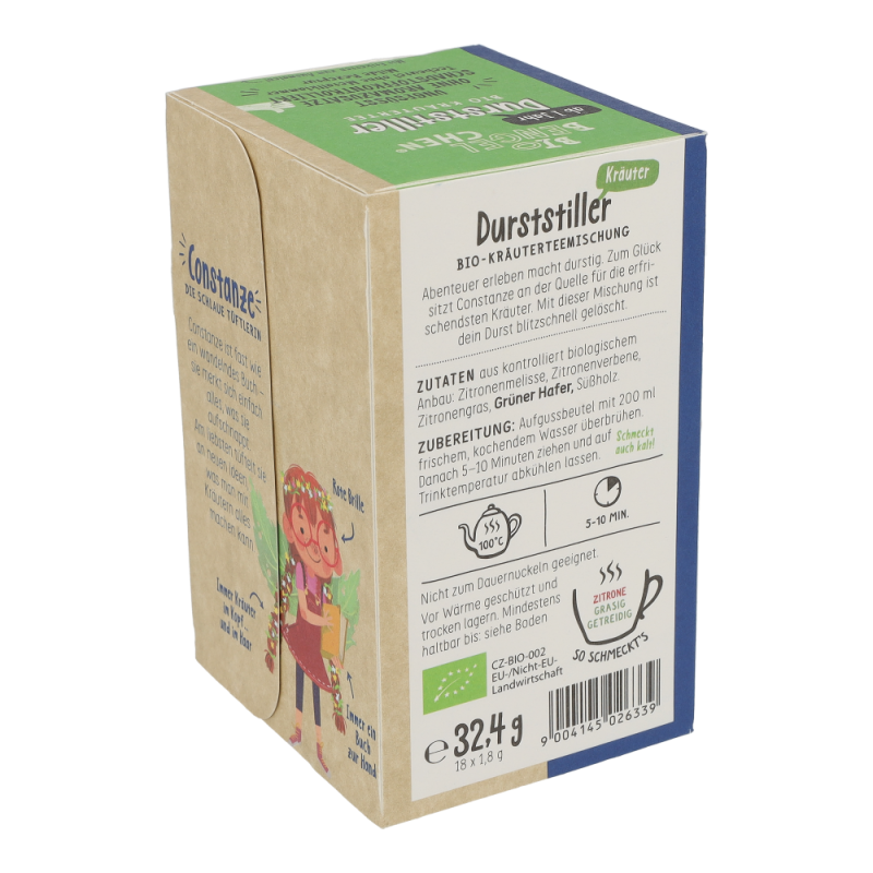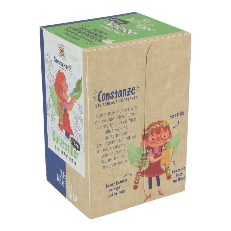 Die Bio-Bengelchen wissen: Abenteuer erleben macht durstig. Zum Glück sitzt Constanze an der Quelle für die erfrischendsten Bio-Kräuter. Zitronenmelisse, Zitronenverbene und Zitronengras stecken in dieser Teemischung die deinen Durst blitzschnell löscht.