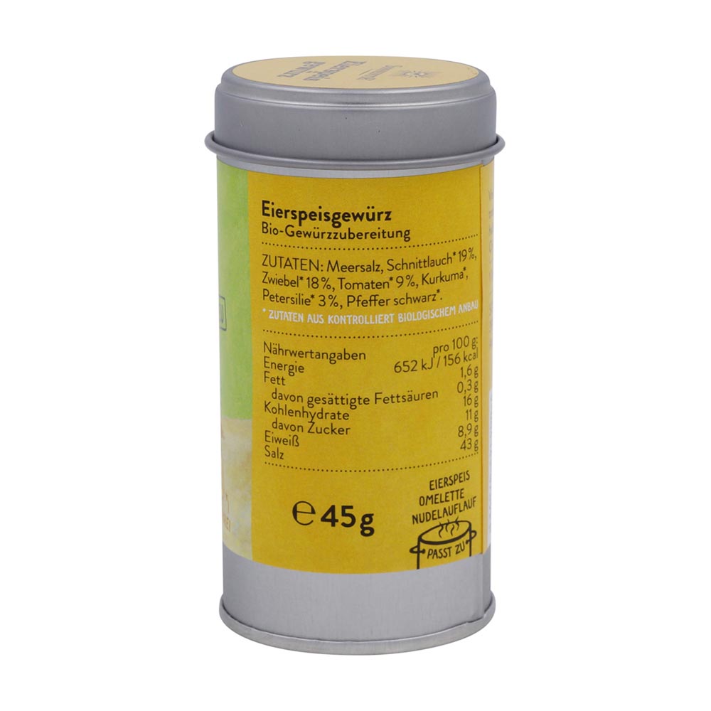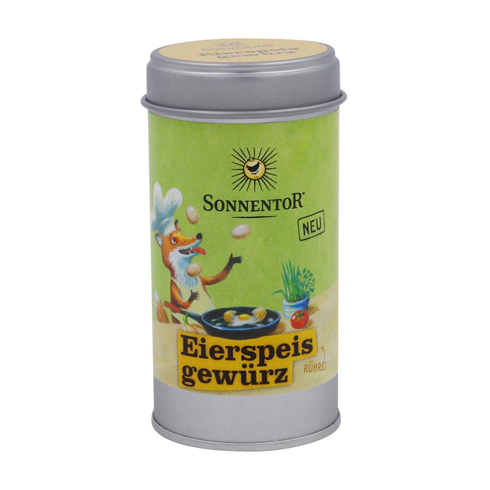 Das neue Lieblingsgewürz für alle die gerne herumeiern. Ob Rührei oder Omelette oder Nudelauflauf – in dieser Gewürzmischung mit Meersalz ist schon alles drin, was du brauchst. Schnittlauch, Kurkuma und Tomate zaubern Farbe auf den Teller und bringen Abwechslung ins Ei-nerlei. Da wird der Fuchs mit der Pfanne verrückt!