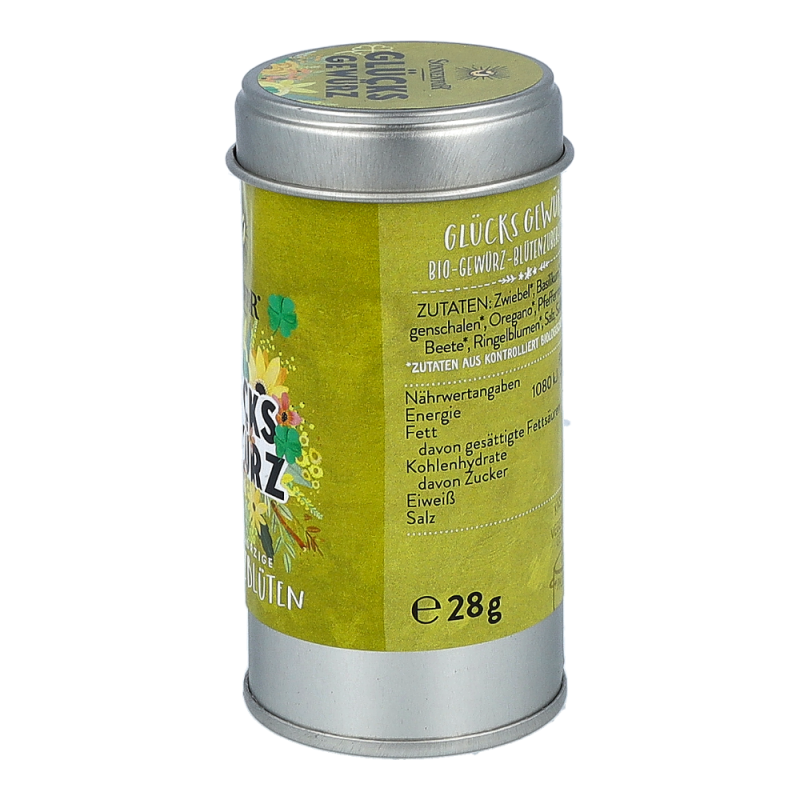 Die Sonnentor Glücks Gewürz-Blüten-Zubereitung in der 28 g Streudose sorgt mit mediterranen Kräutern wie Basilikum und Oregano, abgerundet mit rosa Pfeffer, roter Beete und Ringelblumen und einer würzigen Lauchnote für nachhaltige Glücksgefühle! Wunderbar schmeckt diese Mischung zu Kartoffeln, Wurst und Speck und sie verleiht den italienischen Klassikern Nudeln, Pizza und Bruschetta-Brötchen einen neuen Touch.