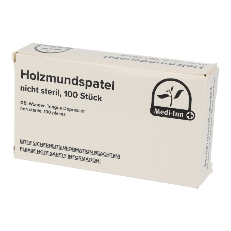 Der Holzmundspatel verfügt über abgerundete Ecken, die Verletzungen des Patienten verhindern.