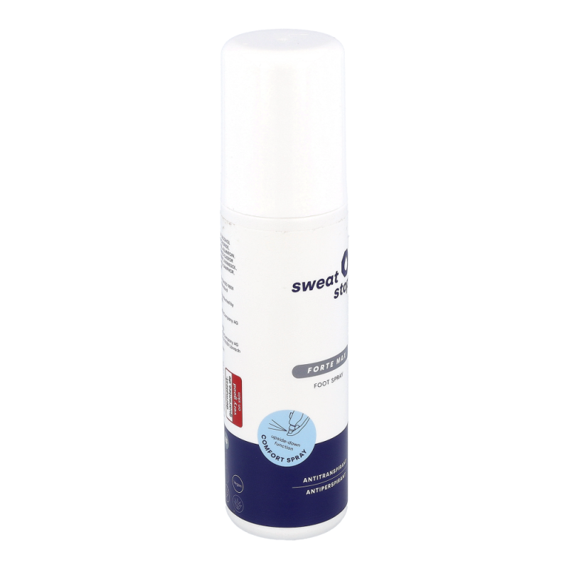 Sweatstop Fuß Spray forte Max hilft gegen Schweiß- und Geruchsbildung an den Füßen. Mit dem speziell entwickelten Upside Down Pumpsystem wird eine mühelose Anwendung an den Füßen ermöglicht. Gibt Ihnen 24 Stunden das Gefühl der Sicherheit.