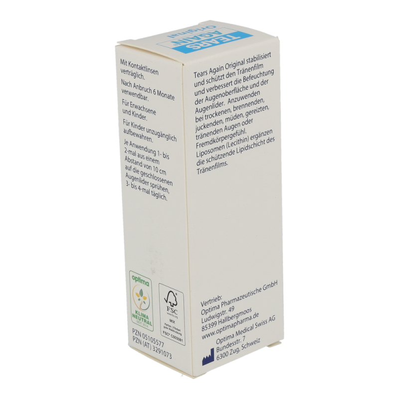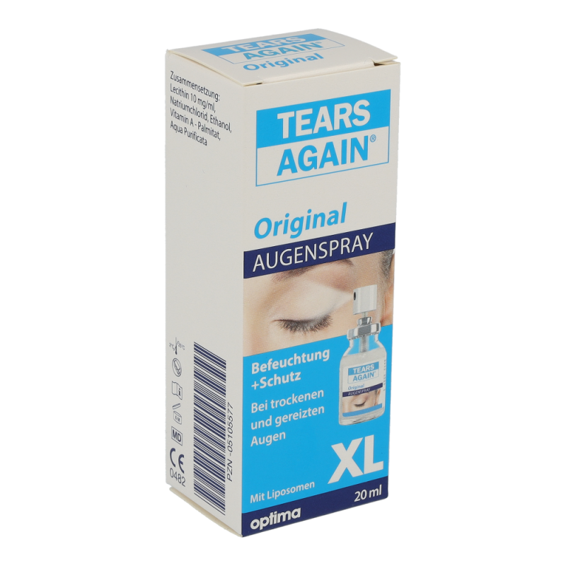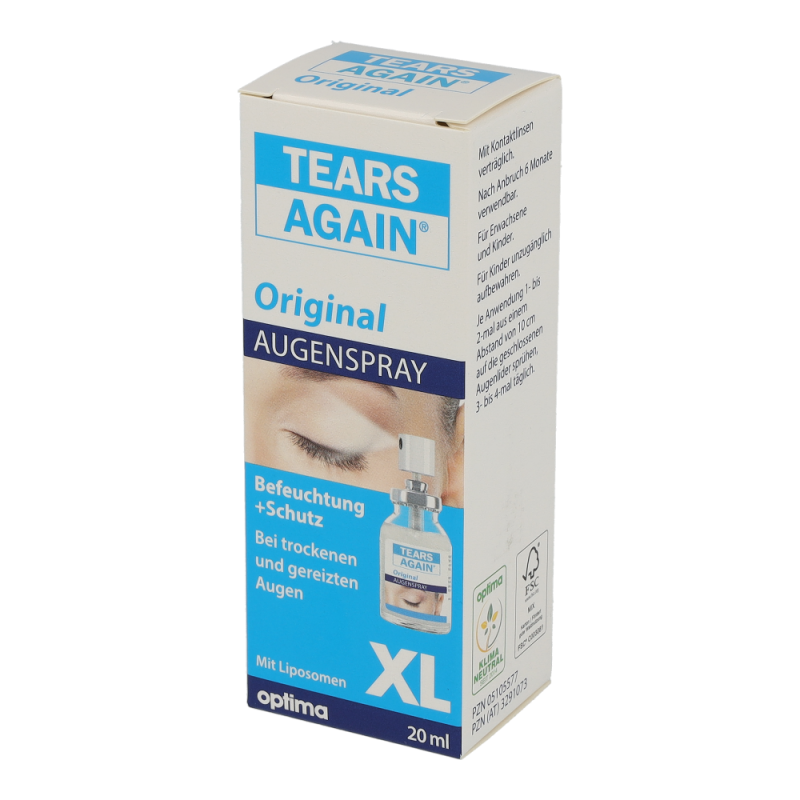Tears Again Augen-Spray zur verbesserten Befeuchtung der Augen und Augenlider. Die erste Wahl bei umweltbedingten trockenen und tränenden Augen, Spannungsgefühl der Augenlider, Fremdkörpergefühl, Brennen und Jucken der Augen.
