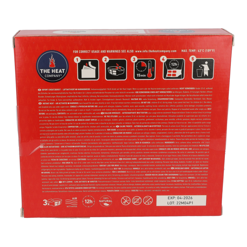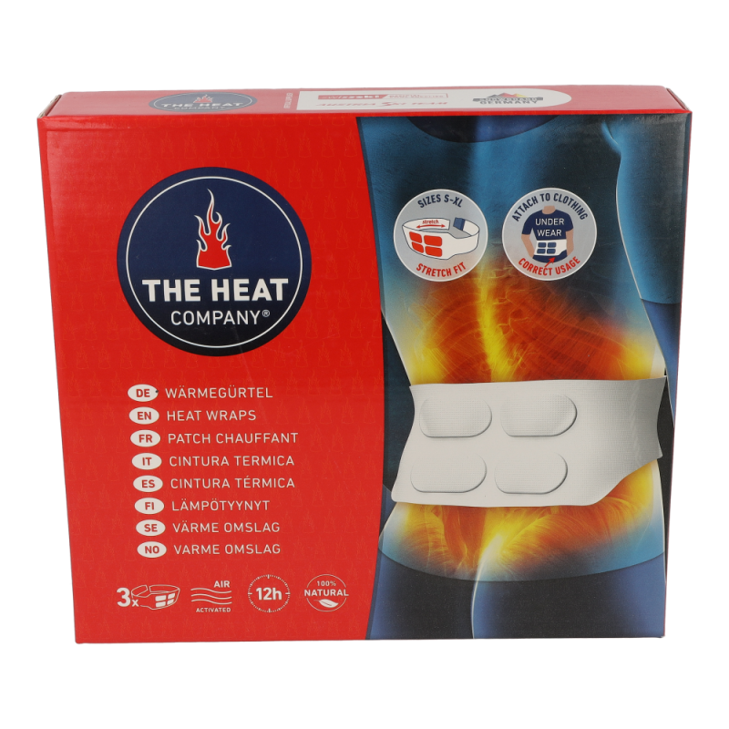 The Heatcompany Wärmegürtel wärmt 12 Stunden rundum. Die Pads erwärmen sich von selbst an der Luft und sind ungeöffnet mehrere Jahre haltbar.