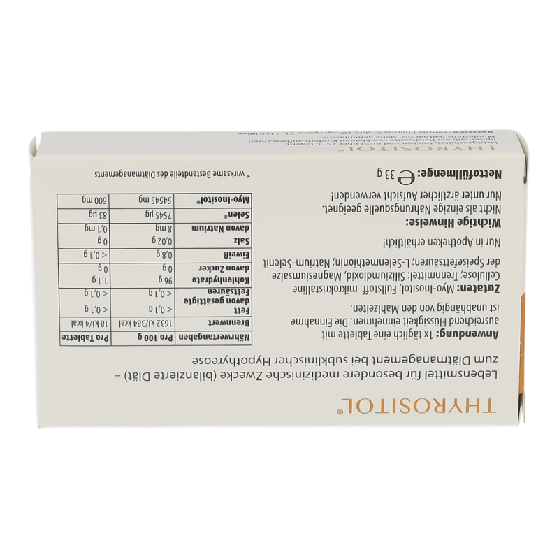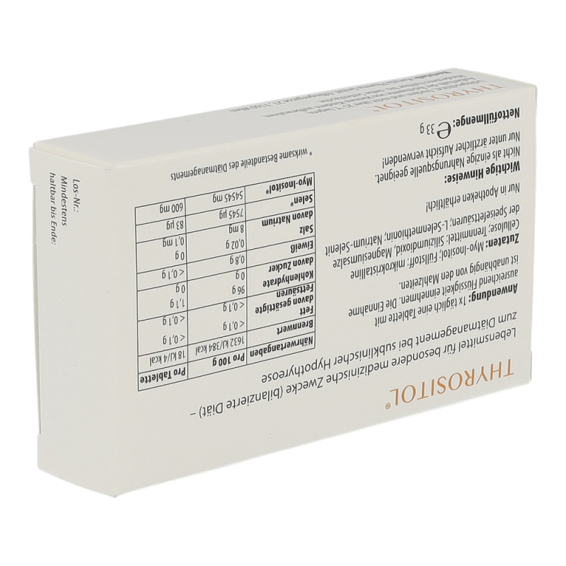 Thyrositol ist ein Nahrungsergänzungsmittel für besondere medizinische Zwecke (bilanzierte Diät) und zum Diätmanagement bei sublinischer Hypothyreose.
