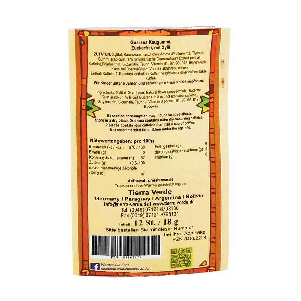 Tierra Verde Guarana Kaugummi gibt mehr Energie und erhöht die Konzentration 4 bis 8 Stunden.