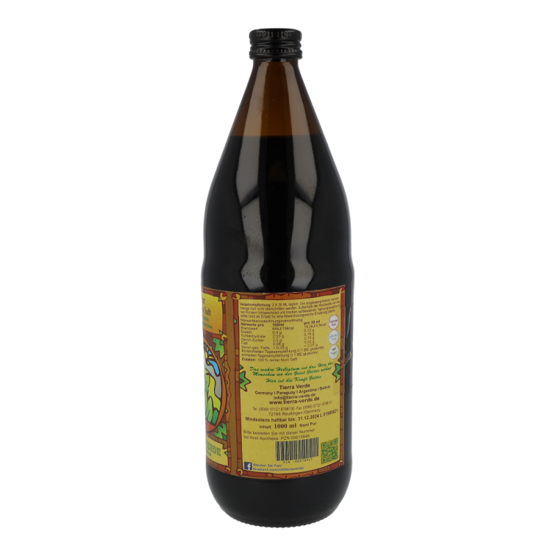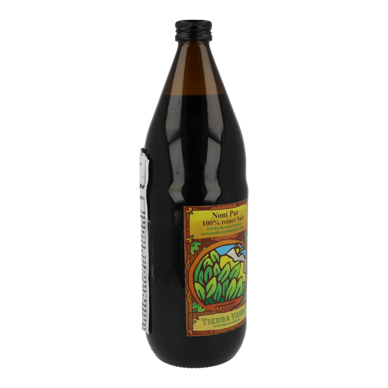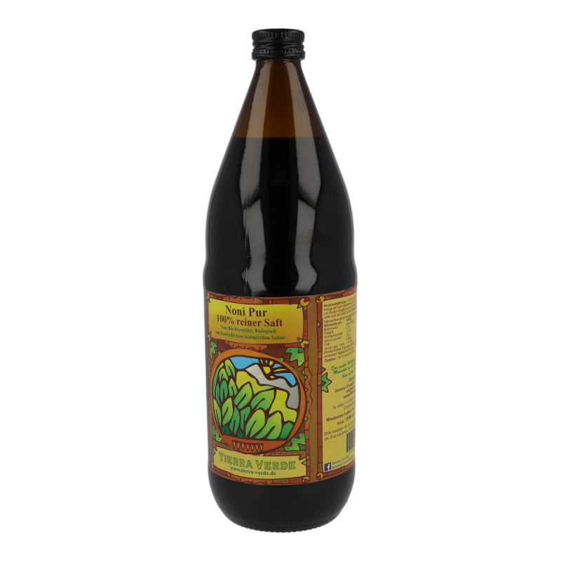 Tierra Verde Noni Saft: Die Noni soll rund 60 Substanzen enthalten, die allgemein für ihre gesundheitsfördernden Auswirkungen auf den menschlichen Körper bekannt sind. Darunter befinden sich Aminosäuren (wichtig für Zellaufbau, Immunsystem, Stoffwechsel und Hormone), Enzyme (wichtig z.B. für Schlaf, Verdauung und Energiehaushalt) und Fettsäuren (Schutz unserer Organe, Vorbeugung von Herzkrankheiten, Verwertung von fettlöslichen Vitaminen).Weiterhin enthalte der Saft Eisen, Kalium, Kalzium, Magnesium, Selen, Mangan, Kupfer, Zink sowie die Vitamine A, C, E, H und B-Vitamine.