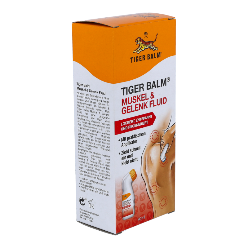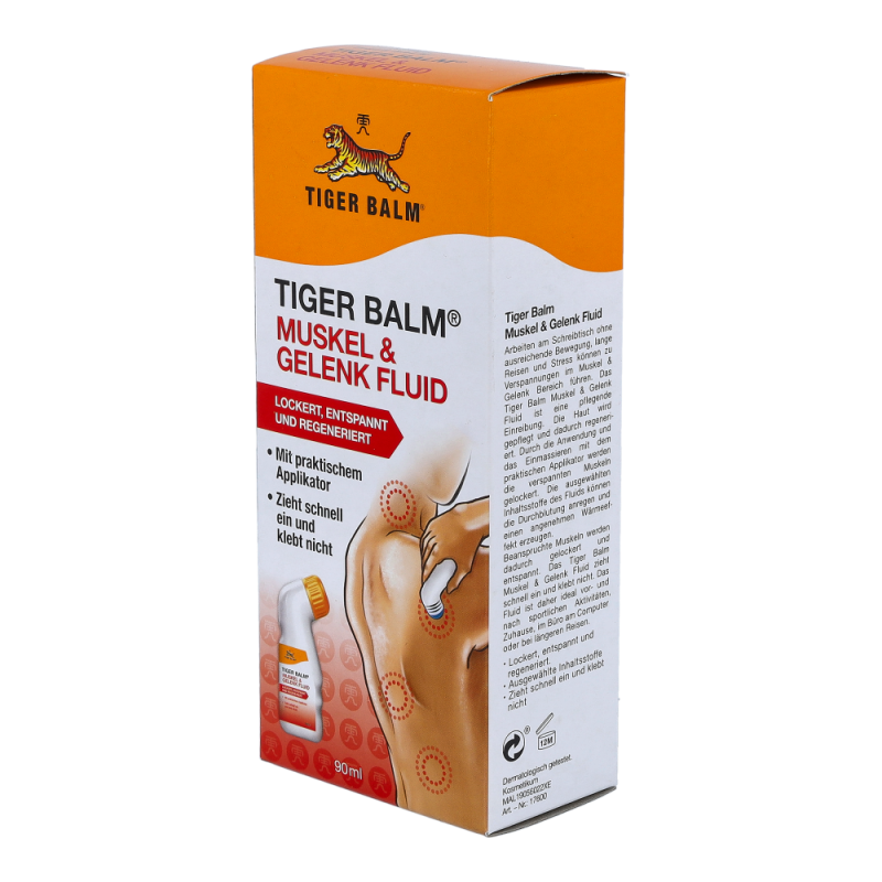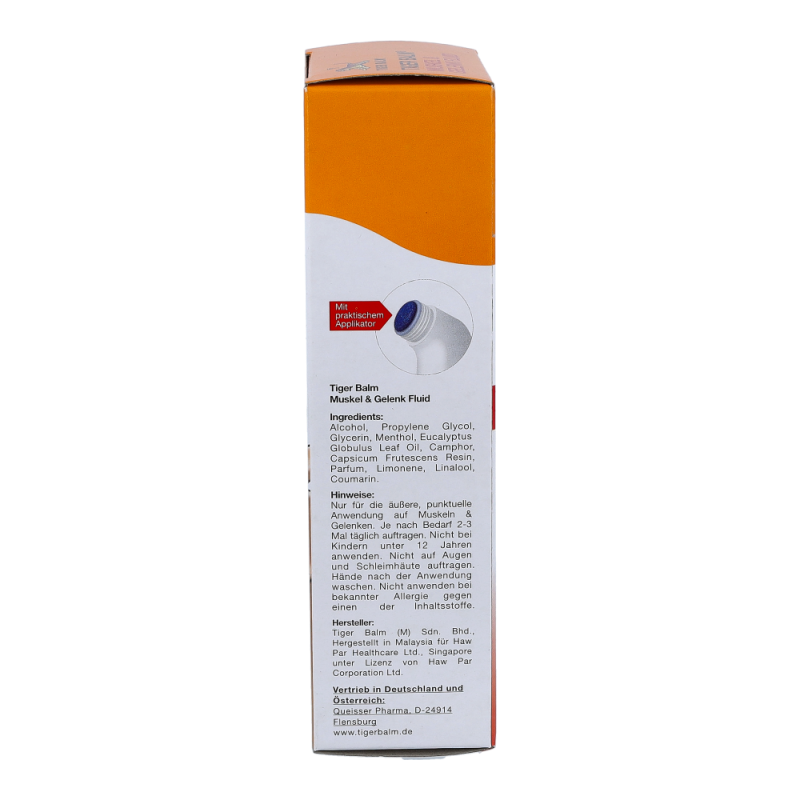 Entdecken Sie das neueste Produkt von Tiger Balm – TIGER BALM MUSKEL & GELENK FLUID! Mit seinem handlichen Massage-Applikator sorgt es für ein besonders angenehmes Pflegeerlebnis. Egal ob zu Hause, beim Sport, im Büro oder auf Reisen, dieses pflegende Fluid kann überall hin mitgenommen und direkt angewendet werden. Der ergonomisch geformte Applikator ermöglicht eine einfache Selbstanwendung, selbst an schwer zugänglichen Stellen oder bei eingeschränkter Beweglichkeit. Sie können die Emulsion mühelos auftragen und beanspruchte Muskelpartien wie Waden, Oberschenkel und den unteren Rücken sanft massieren. TIGER BALM MUSKEL & GELENK FLUID zieht schnell in die Haut ein, ohne zu kleben, und erfordert kein Händewaschen nach der Anwendung. Dies macht es ideal für einen modernen Lifestyle, um Muskeln mit Hilfe einer wohltuenden Massage zu lockern und zu entspannen. Der vitalisierende Duft der Inhaltsstoffe belebt Haut und Sinne, während die wertvollen Inhaltsstoffe die Muskelpartien aktivieren und einen regenerierenden Effekt auf die Haut haben. Egal ob zu Hause oder unterwegs, genießen Sie das wohltuende Gefühl von TIGER BALM MUSKEL & GELENK FLUID. Holen Sie sich jetzt das handliche Format und erleben Sie die praktische Anwendung mit dem Massage-Applikator.